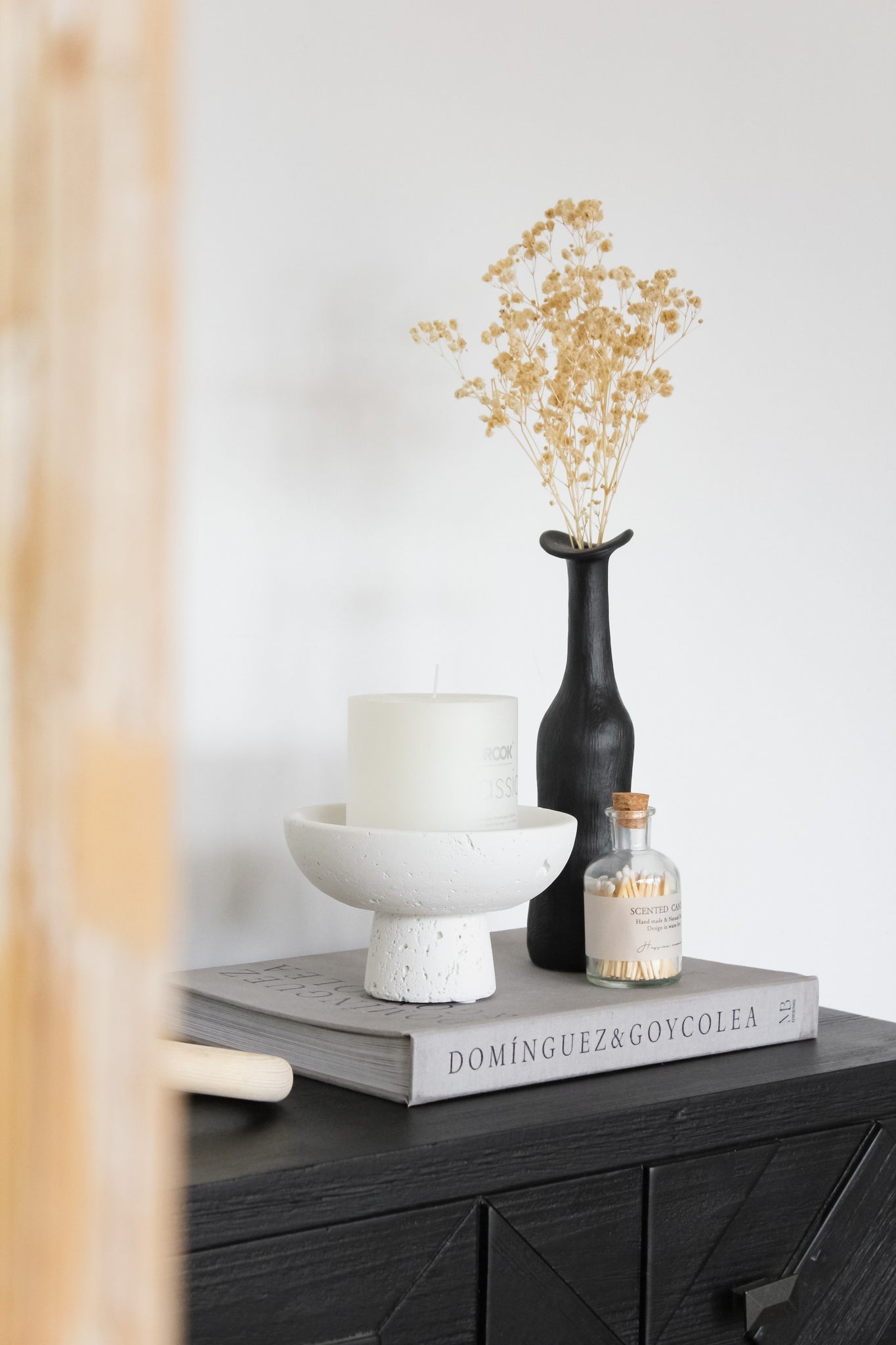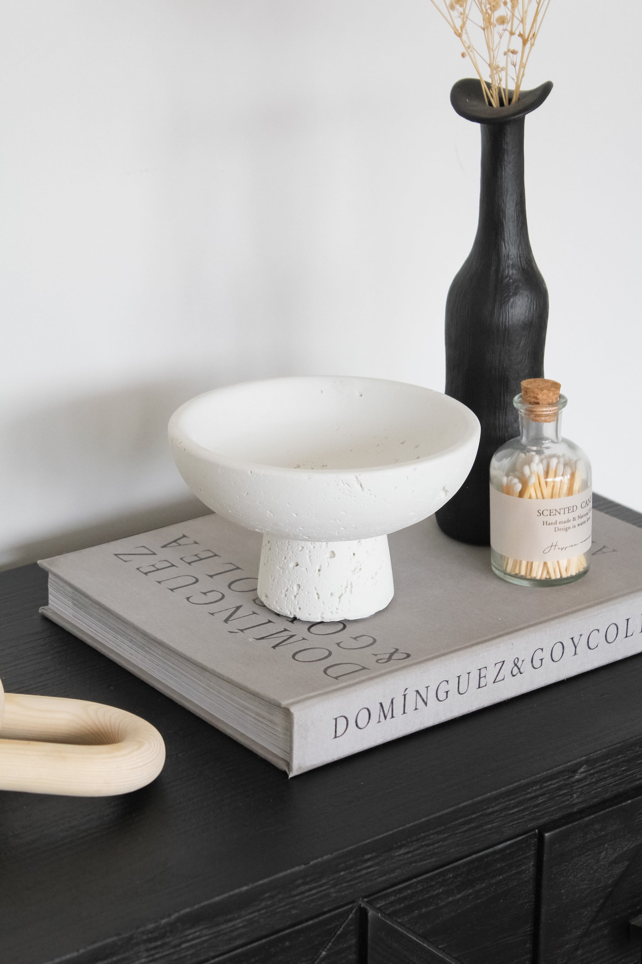 Bandeja curva de piedra en color blanco. Un modelo simple y limpio en su diseño, que entrega esa cuota minimalista y elegante a cualquier espacio. Puedes montarlo con un velón grande de tres mechas como centro de mesa o sobre el arrimo de entrada para dejar tus llaves, de cualquier forma llamará la atención a primera vista.