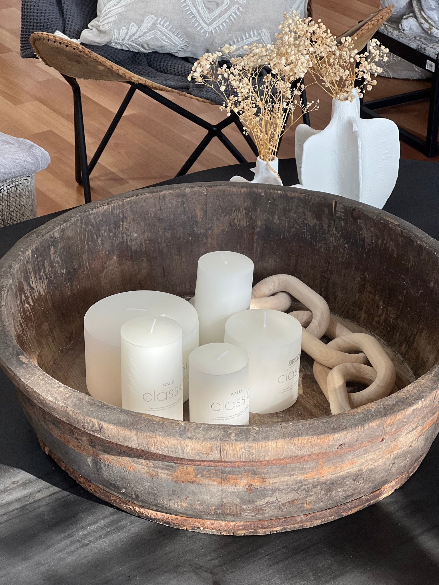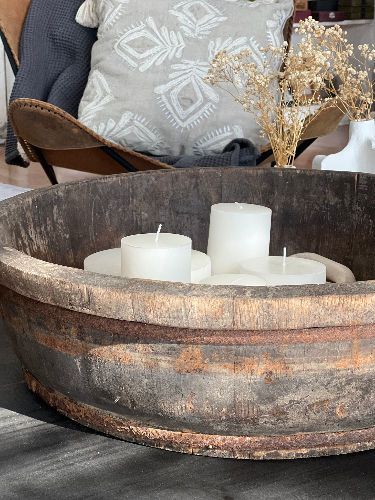 Batea confeccionada a mano con madera de demolición. Un elemento que evoca mil sensaciones y entrega una calidez exquisita al hogar. Verdaderamente es una reliquia que te asuro se robará la mirada de todos al entrar a tu casa.