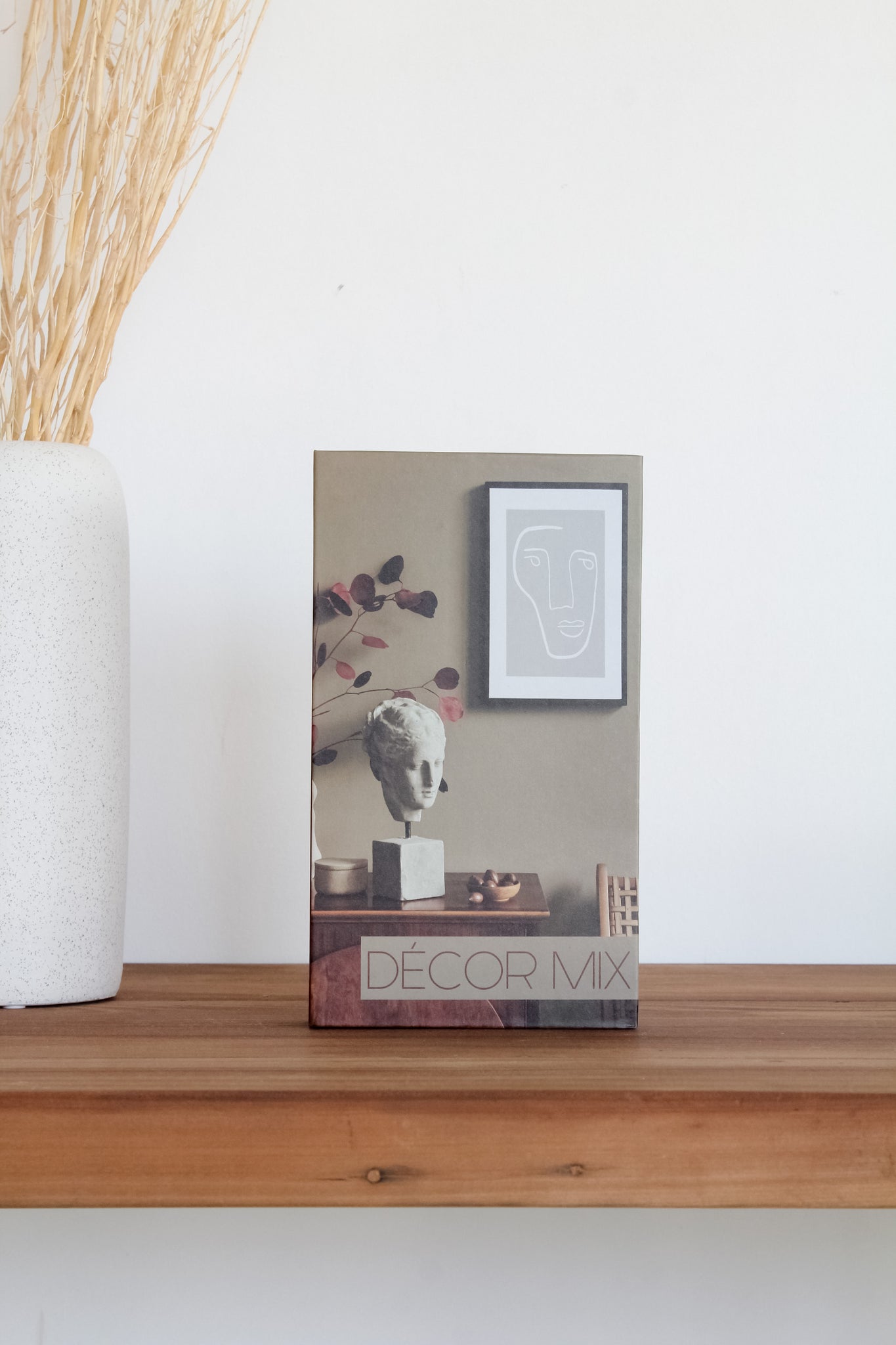 Las cajas libro son un elemento increíble para decorar en mesas de centro con borlas, en mesas laterales para agrupar un pequeño florero con una vela o en repisas para decorar con gráficas preciosas. Además de poder guardar elementos en su interior.