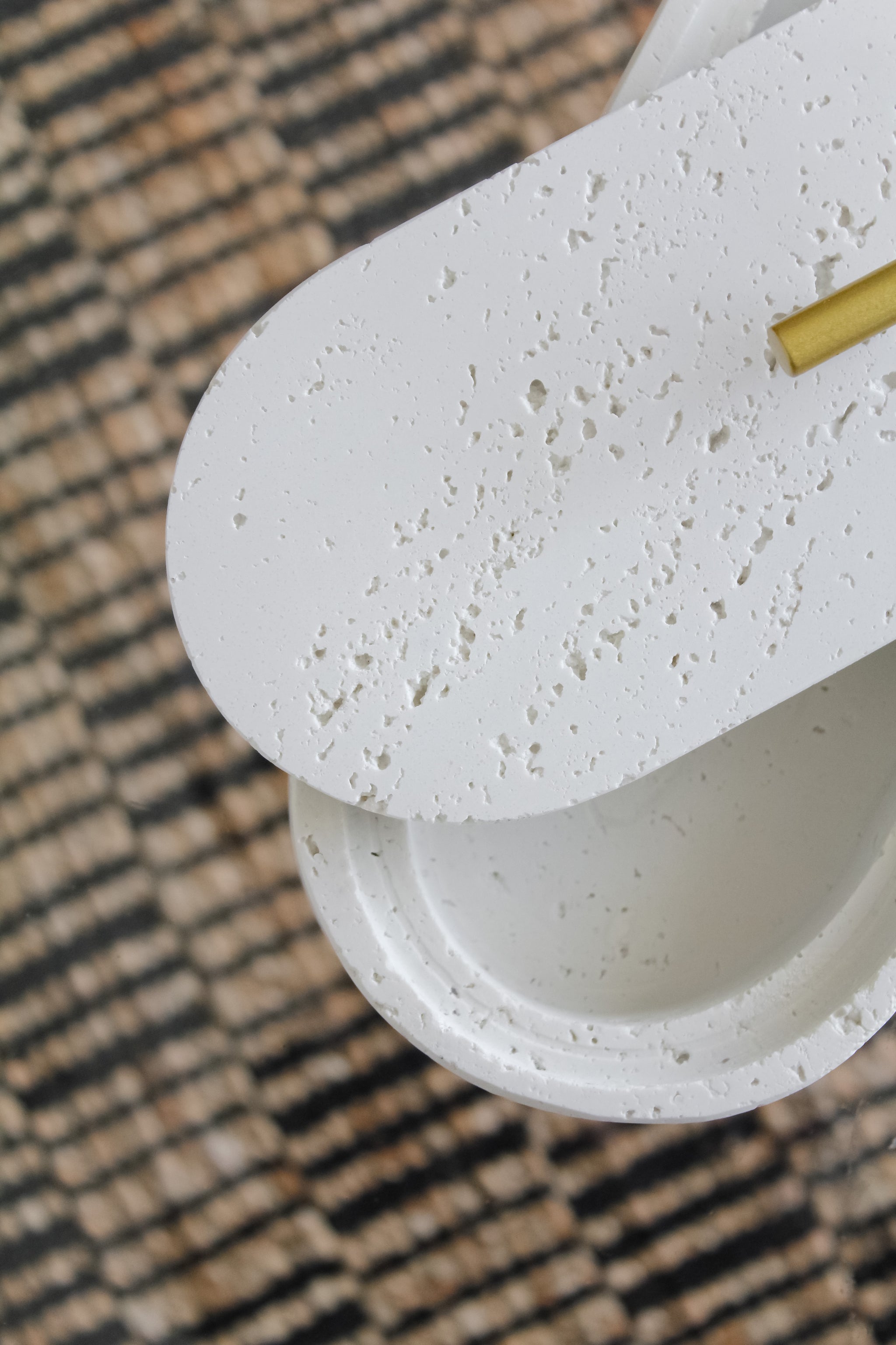 Caja ovalada de piedra color blanco. Un precioso modelo que sin duda impone presencia y entrega luz a tus espacios. Su textura de imitación de piedra blanca le da un toque moderno y se adapta a cualquier estilo de decoración. Te recomendamos montarla en tu mesa de centro de manera decorativa y funcional para guardar lo que necesites.