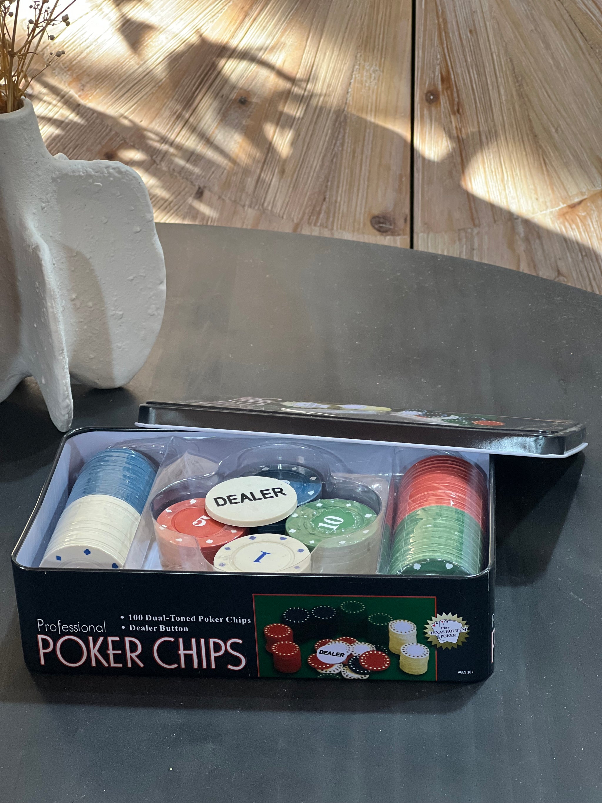 El producto estrella para época de amigo secreto, regalos de navidad y cumpleaños. Completo juego de 100 piezas de póker con botón de dealer. Todo dentro de una caja de metal decorada para poder llevarlo a todos lados.