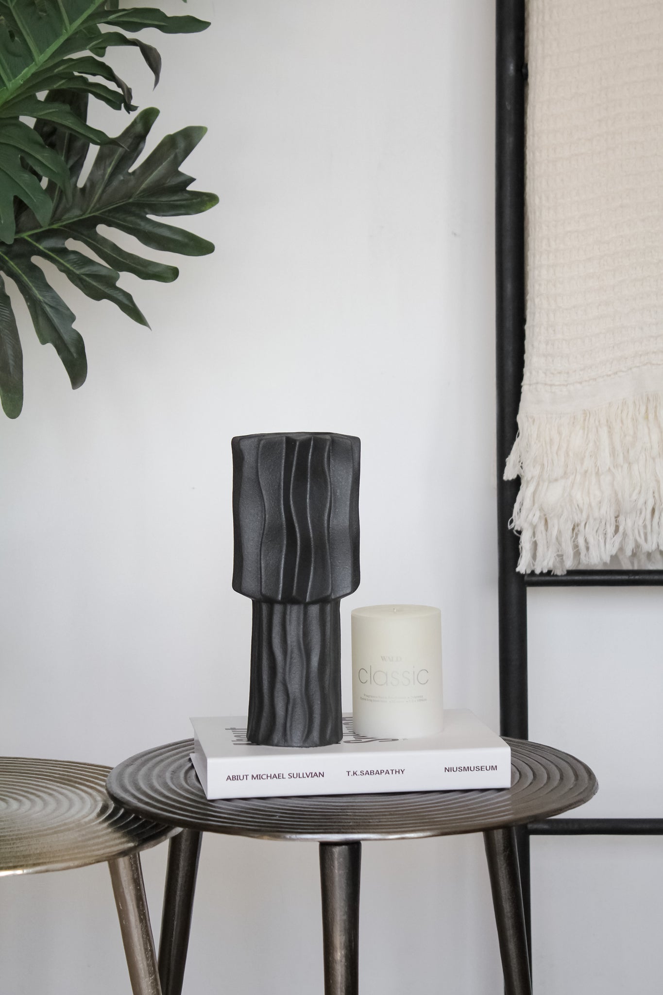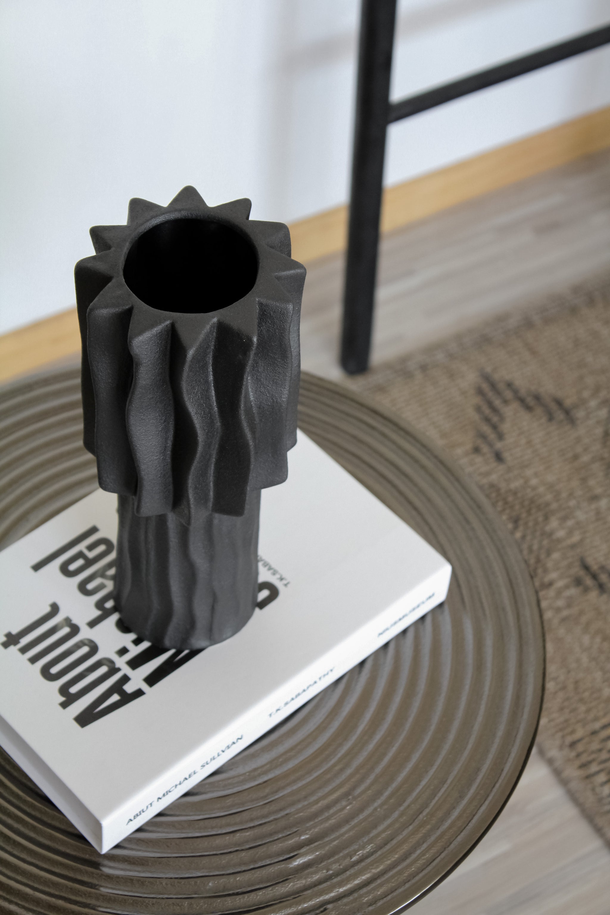Puedes utilizarlo para decorar en tu arrimo, mesa de centro o en repisas. Esta fabricado en cerámica de color negro opaco y su diseño ranurado aporta movimiento a los espacios. Te recomendamos montarlo con flores secas en colores beige para aportar un toque cálido a tus espacios.