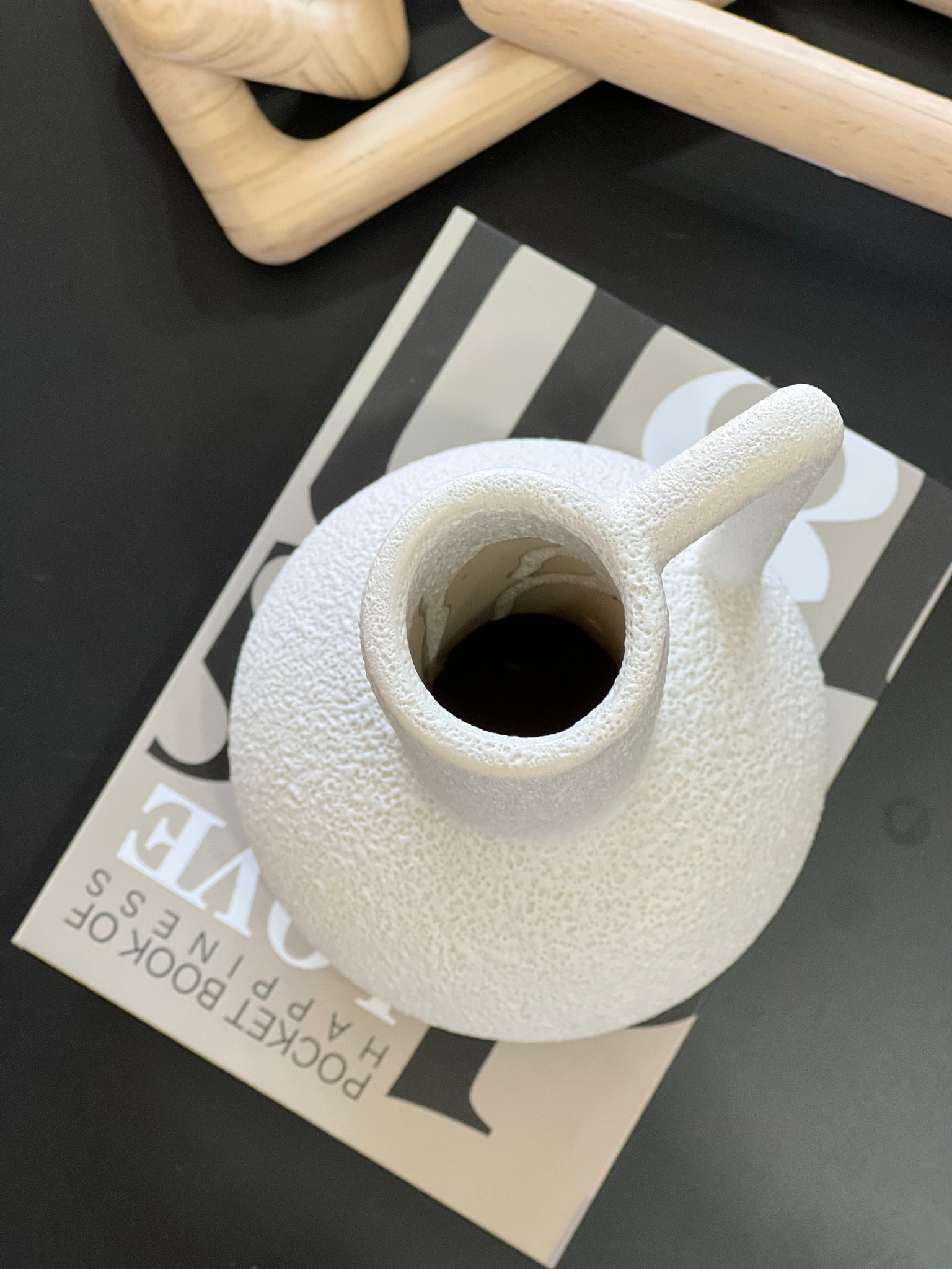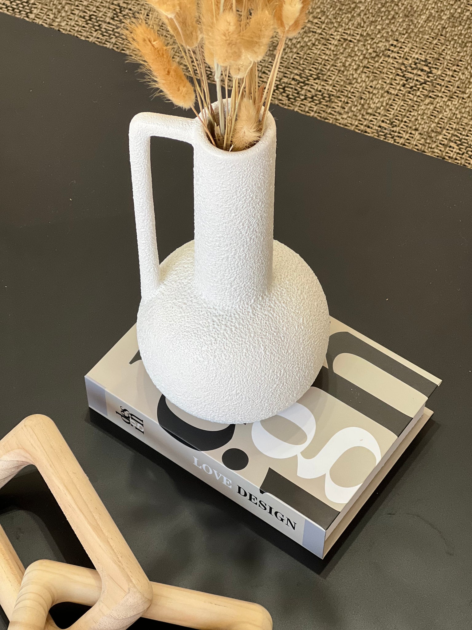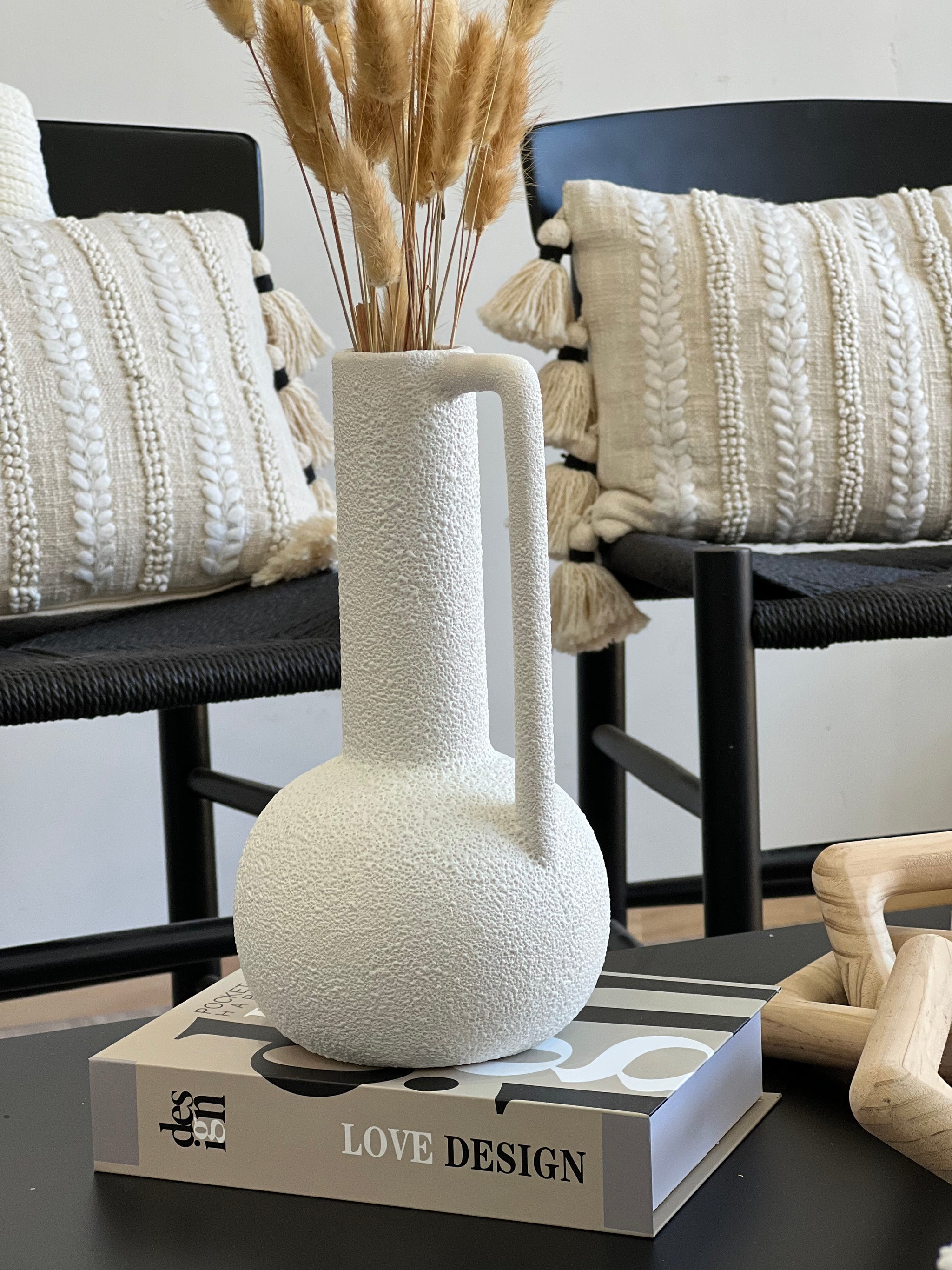 Florero Baco, diseñado en cerámica con terminación rugosa. Un modelo elegante y moderno para que decores en nichos, sobre tu mesa de centro o arrimo.