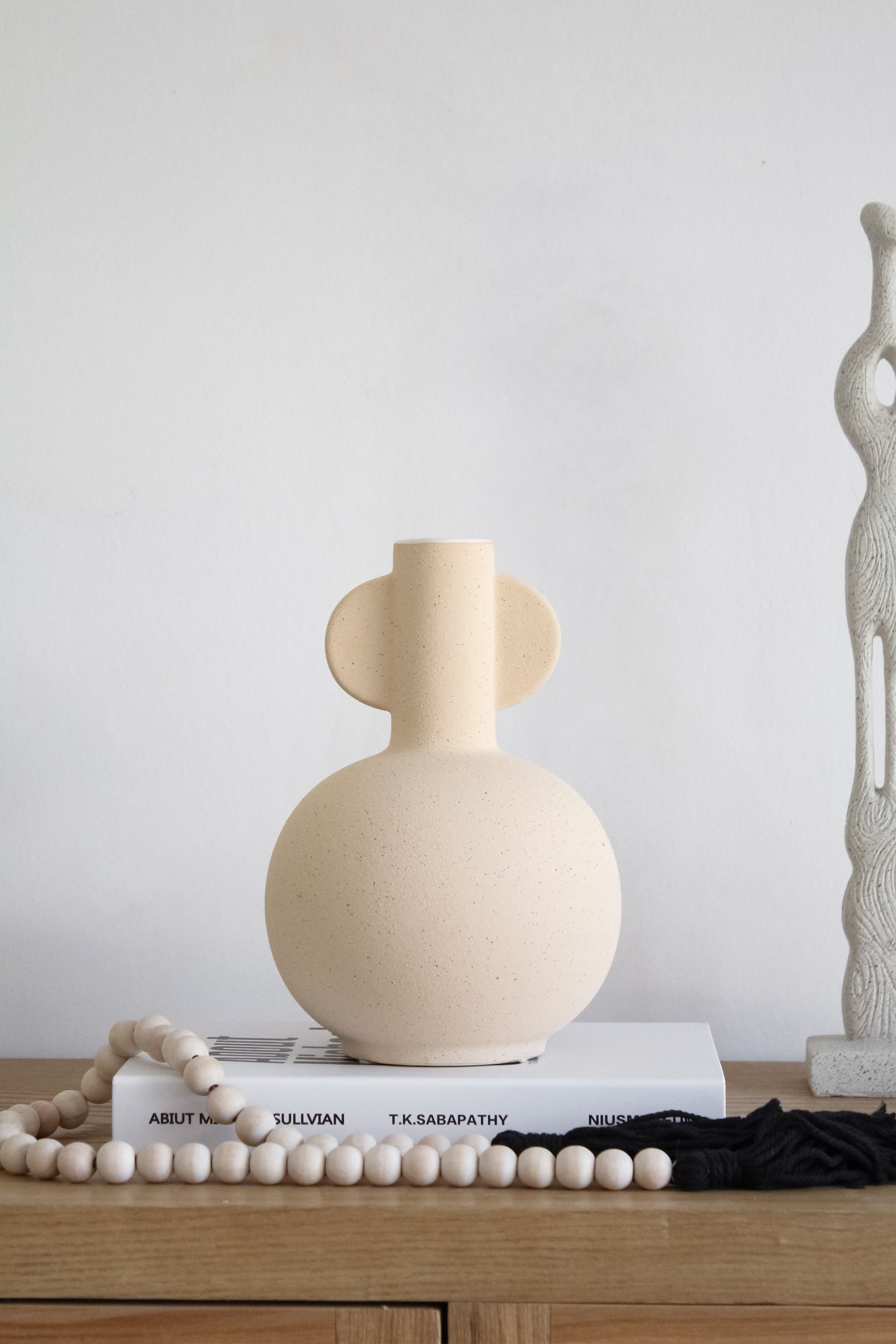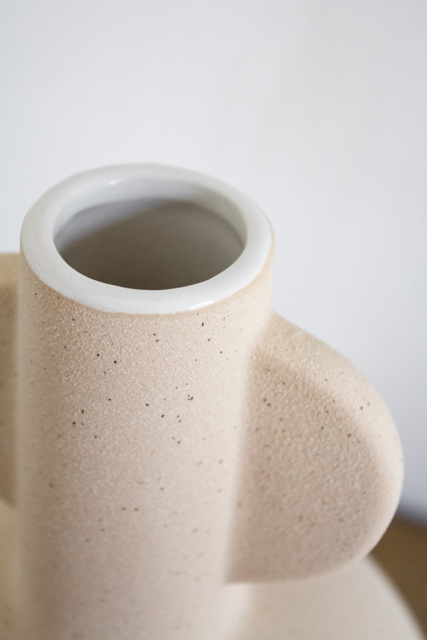 Este nuevo florero está fabricado en cerámica, en su interior tiene terminación cocida lo que te permitirá poner flores naturales y su textura exterior más rugosa con pintura tipo jaspeada de fondo de color beige tipo barquillo.