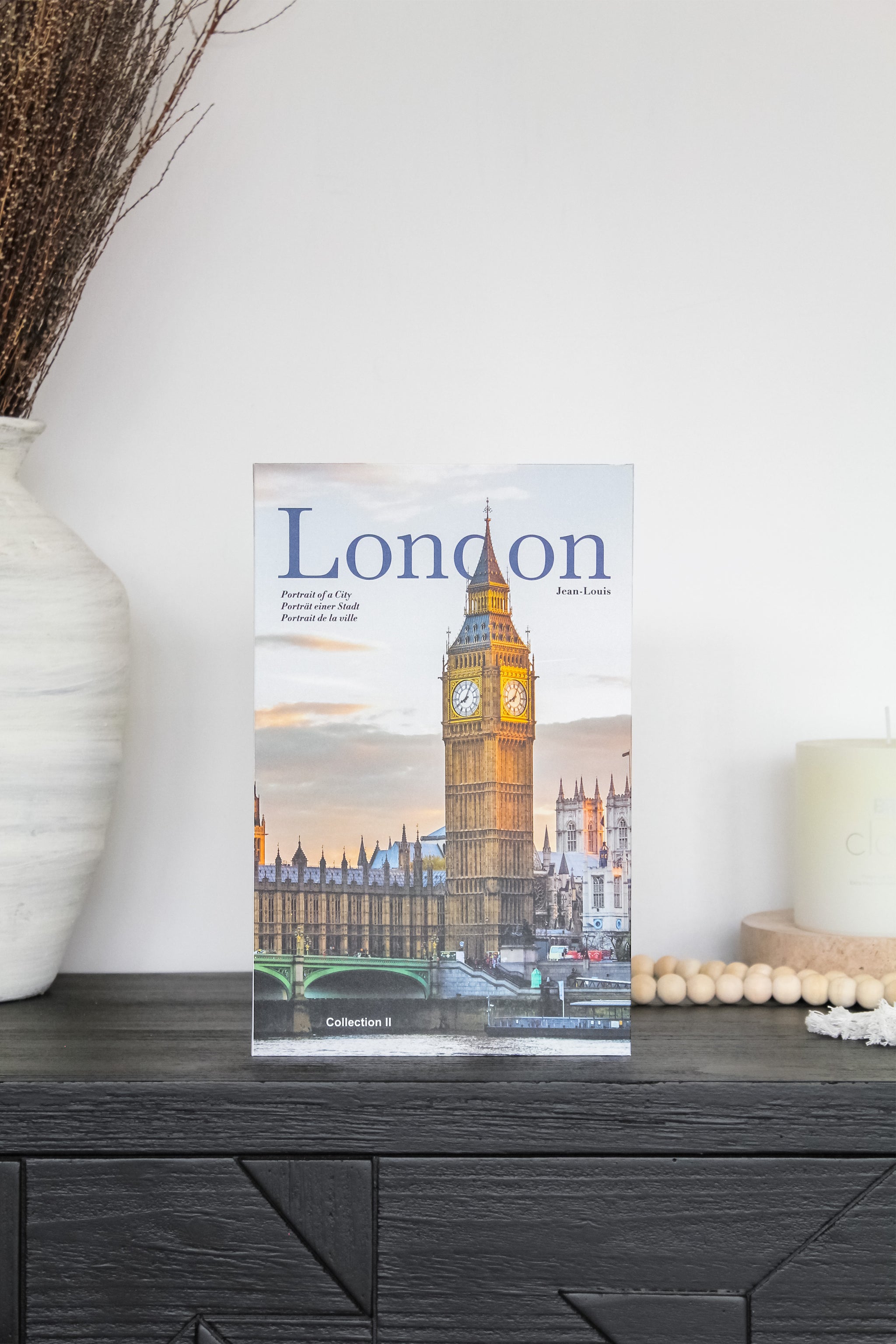 Con el famoso Big Ben y la colorida ciudad de Londres de portada, esta preciosa imitación de libro es un increíble complemento para decorar tu mesa de centro montando sobre ella alguna figura, vela, difusor de varitas o lo que quieras. Además, son perfectas para decorar repisas y aportar al diseño de tu espacio.