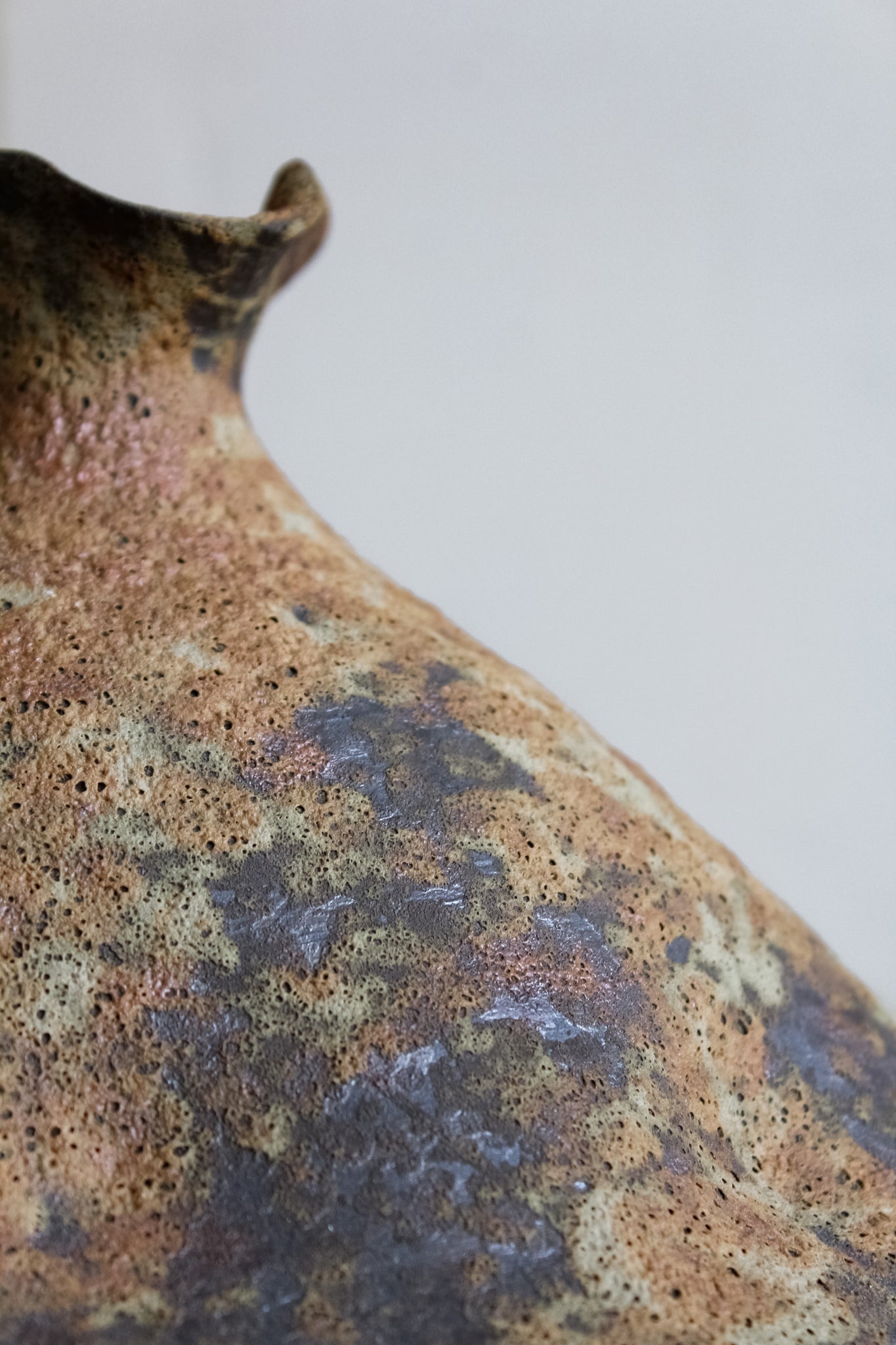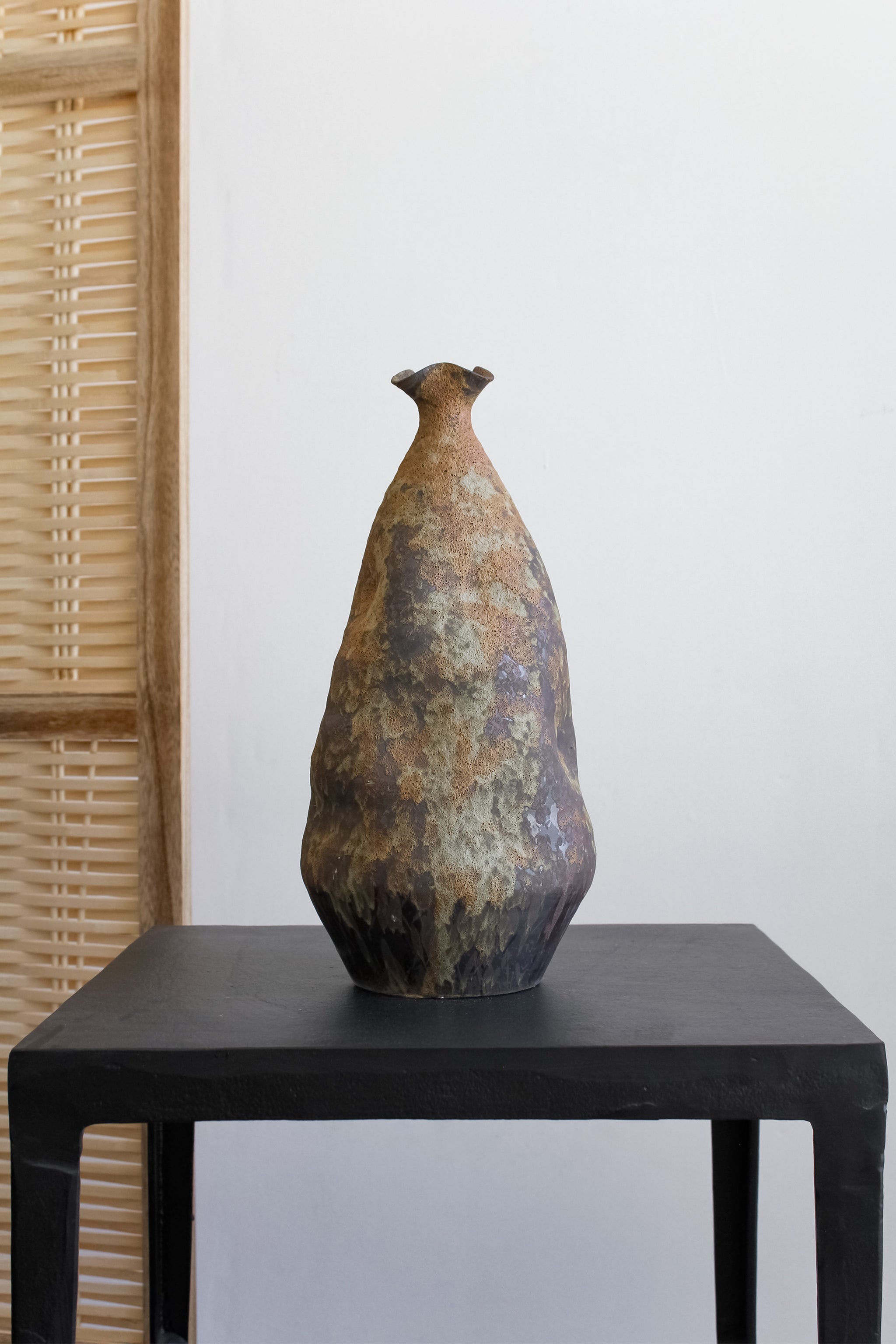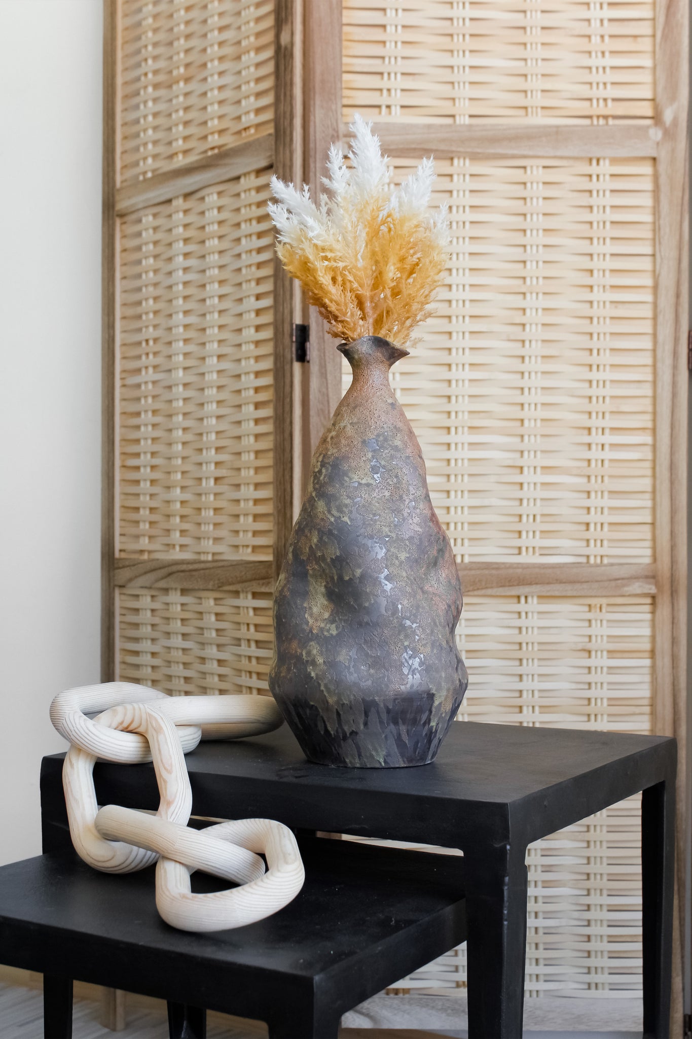 Precioso modelo de jarrón de cerámica, oxidado y con diseño golpeado. De un tamaño ideal, perfecto para ponerlo en tu arrimo de entrada, en una repisa o en exteriores, y agregarle ese toque rústico, pero elegante, que andas buscando.