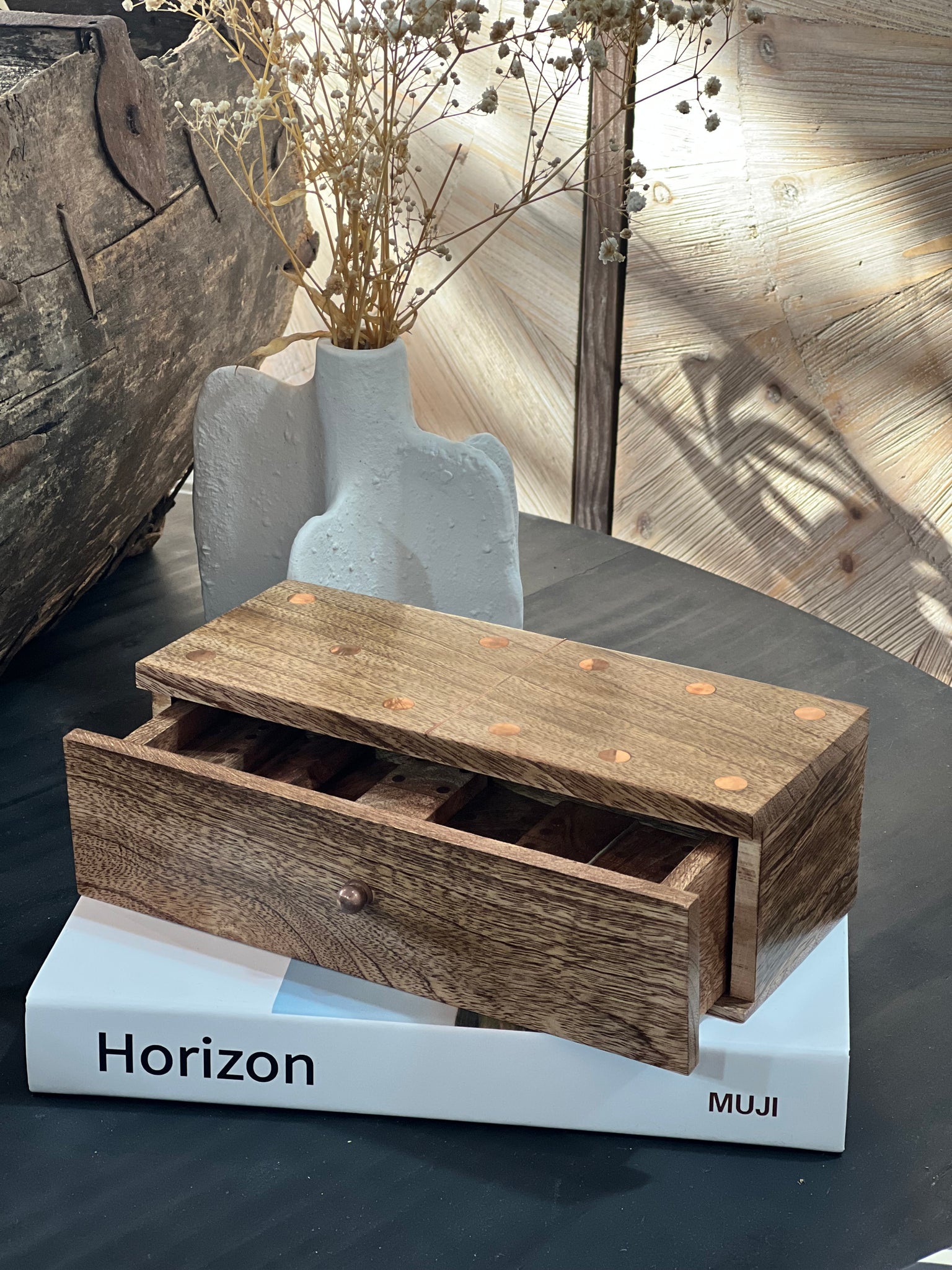 Juego Dominó de madera con fichas de mismo material. Perfecto para la mesa de tu living, con función decorativa y de juego para disfrutar y compartir entre todos.