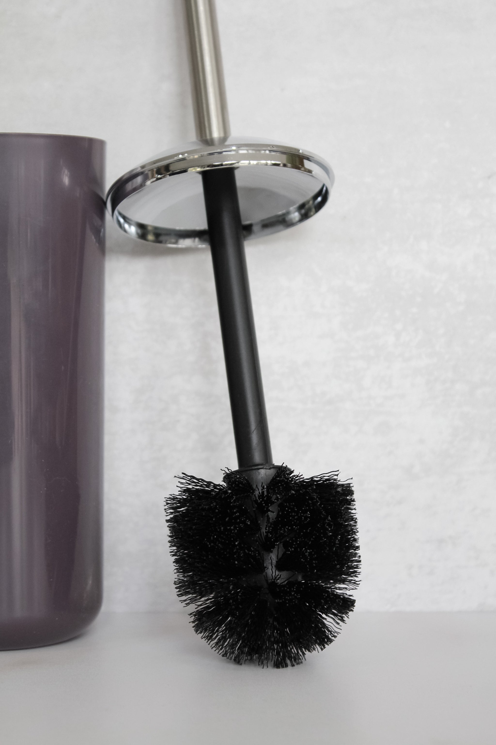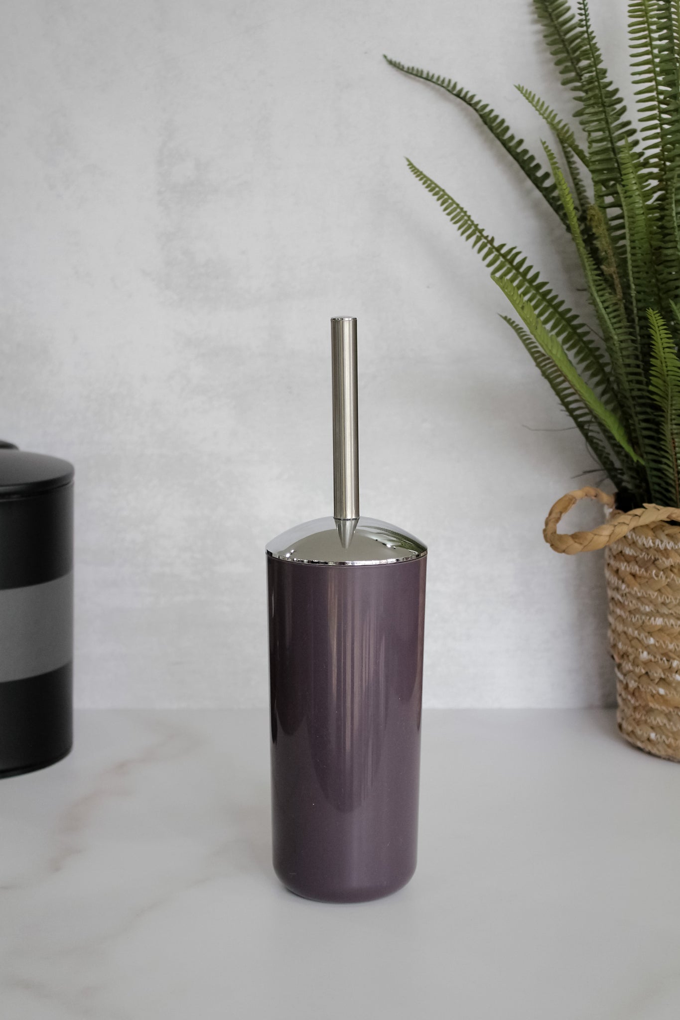 Limpiador de WC de plástico color morado, con cepillo negro y mango plástico plateado. Un producto indispensable en tu baño, que además de funcional aporta esa cuota de estética para que acompañe el estilo de tu baño, lindo y organizado.
