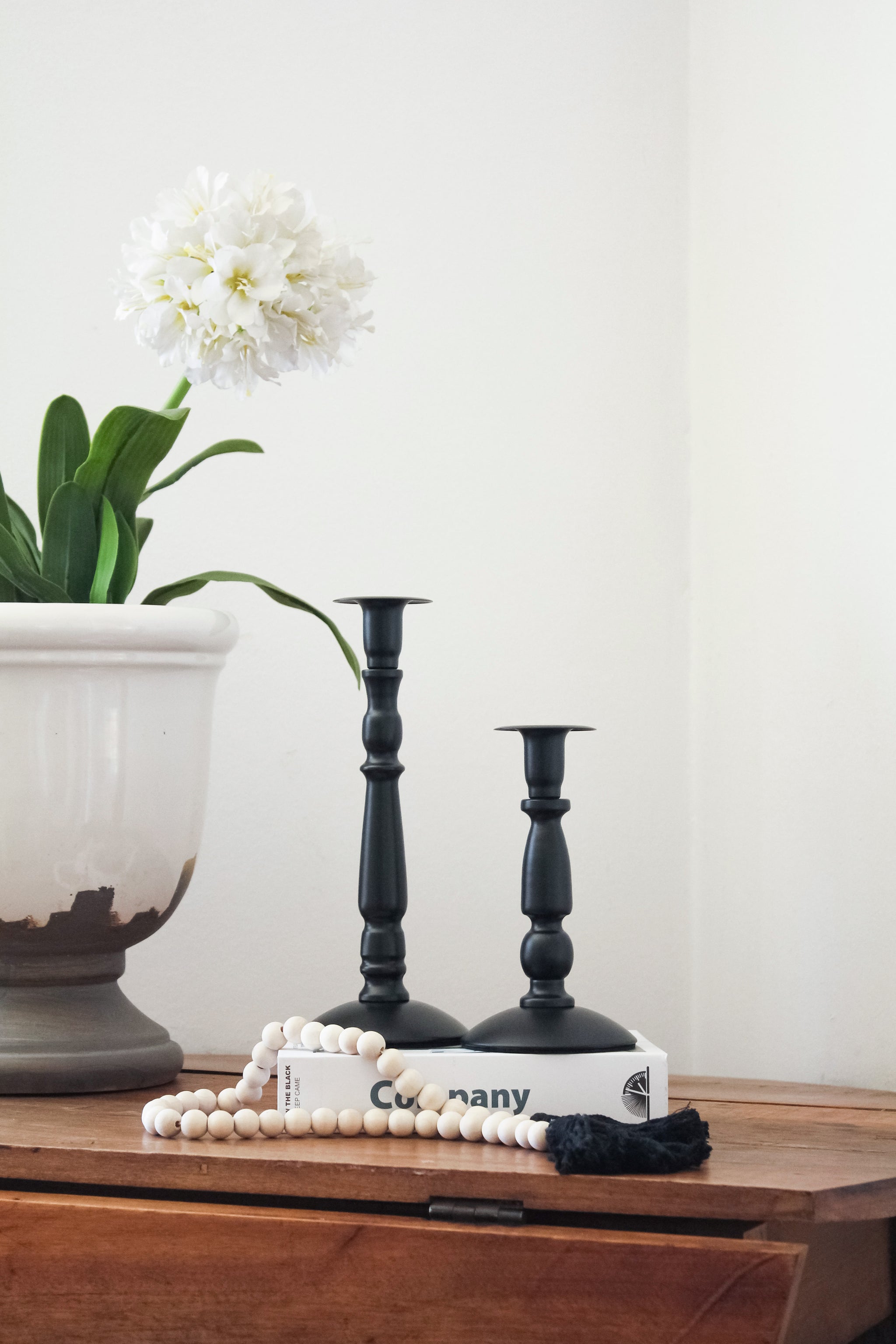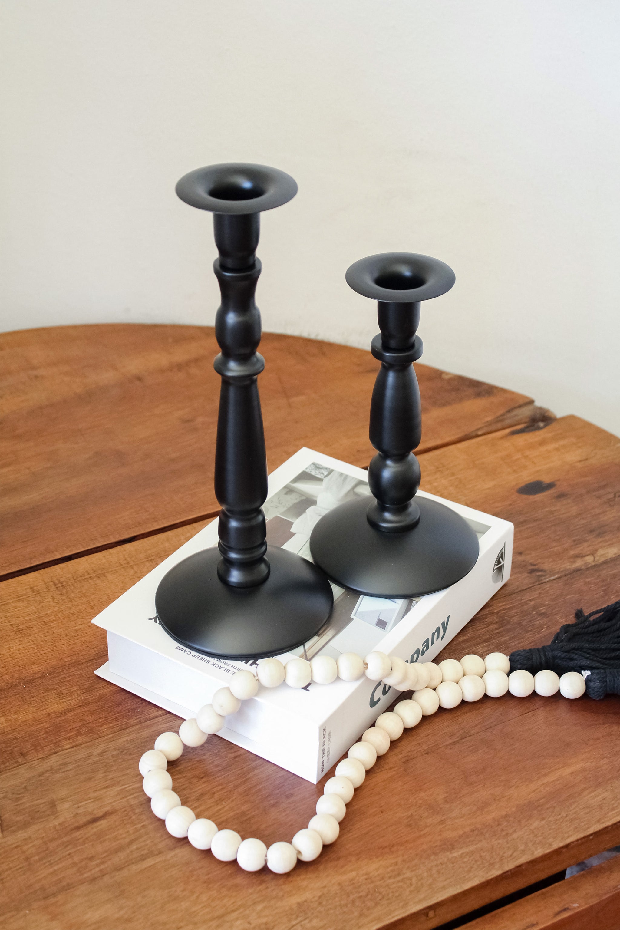 Transforma la iluminación de tus espacios con este increíble portavela de metal, disponible en dos tamaños. En un color negro satinado, puede abarcar una vela de hasta 3cm de diámetro.