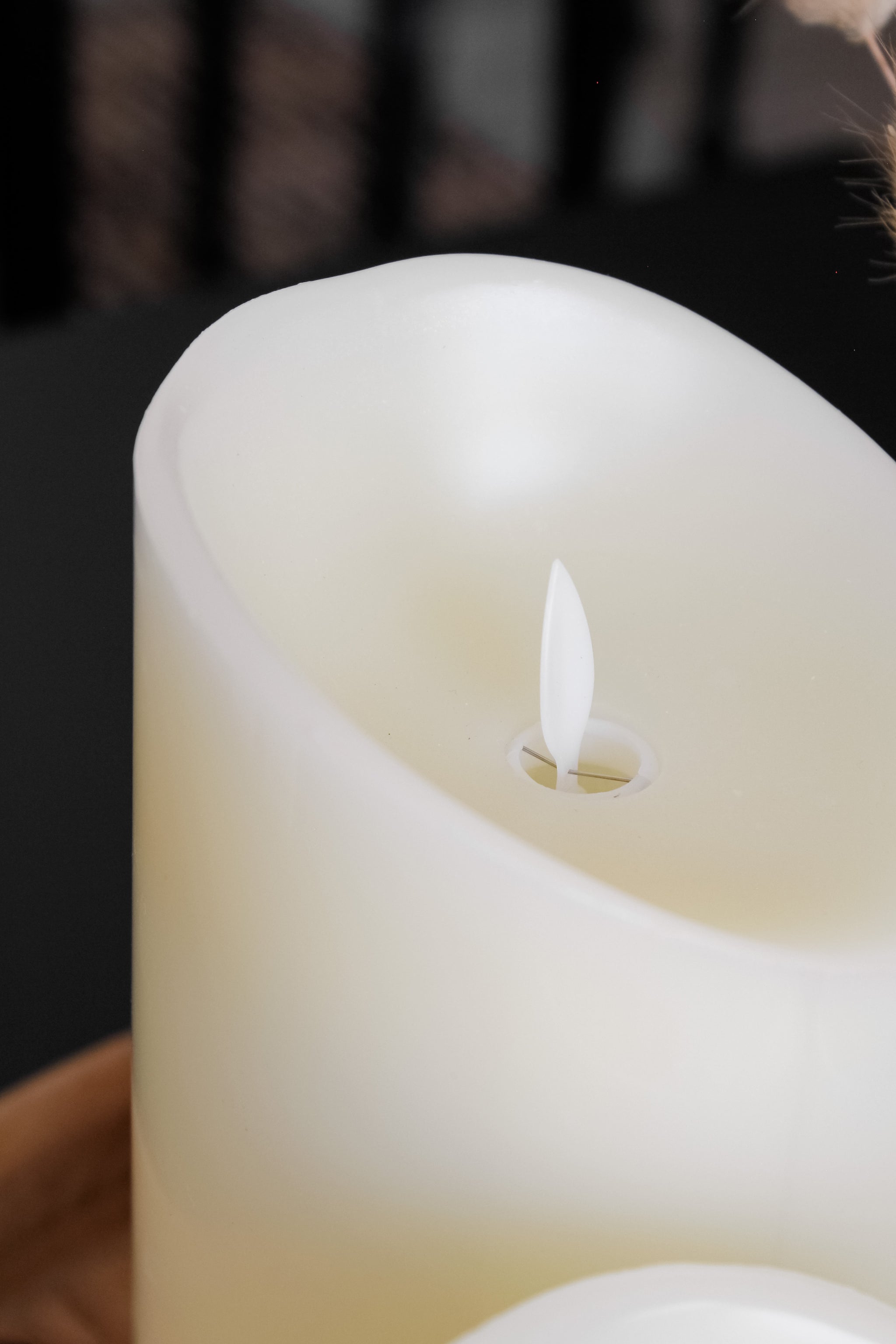 Este modelo está hecho de cera, pero funciona con luz led a pilas (AAA) y al encenderla su llama imita la luz de la vela a la perfección. Ideales si buscas un look real y que te duren por muchísimo tiempo!