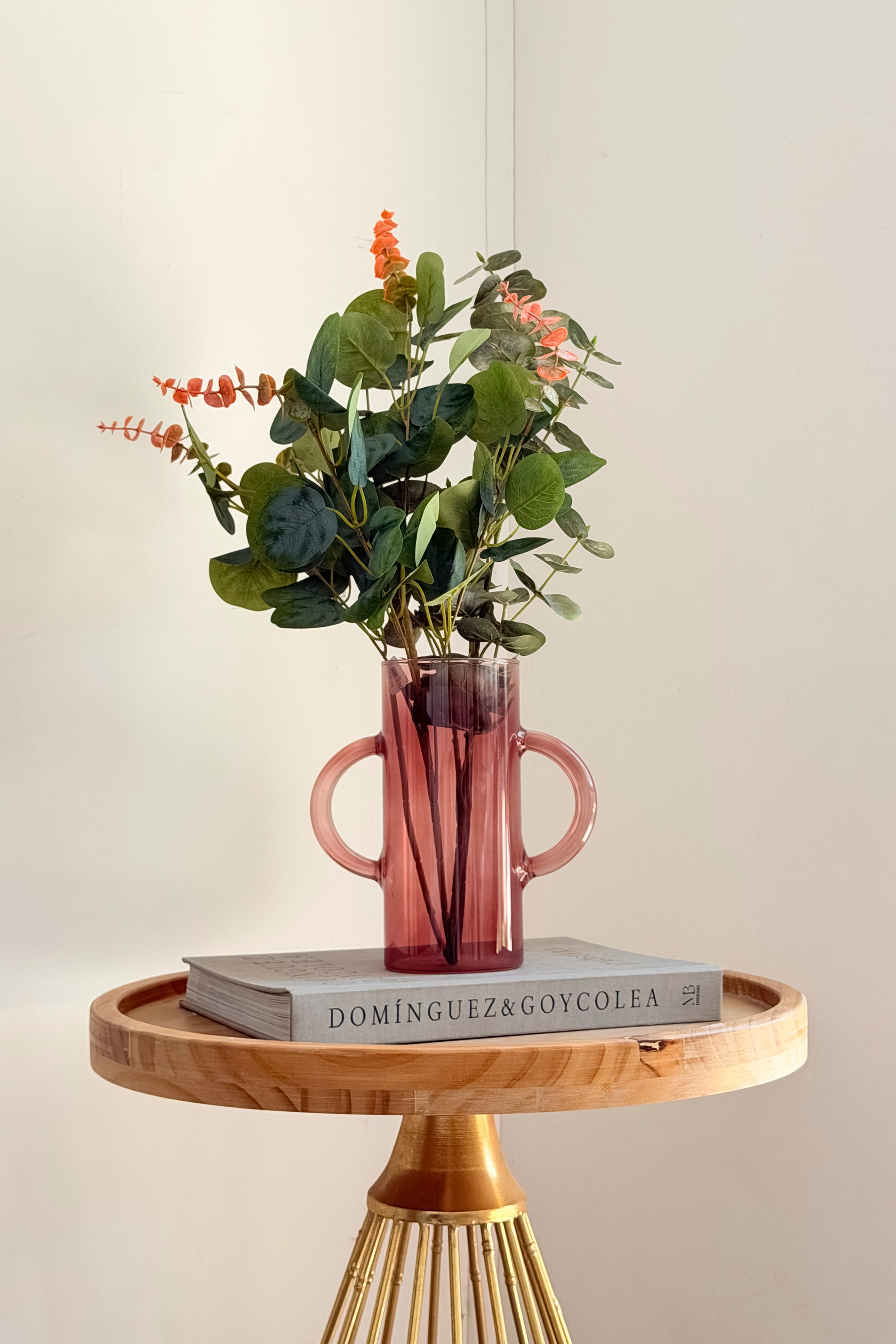 Florero cilíndrico de vidrio liso con dos asas, disponible en color rosado y transparente. Un diseño simple, sobrio y que permite lucir un precioso ramo de flores dándole completo protagonismo. Puedes montarlo en tu arrimo de entrada o sobre un libro en una mesita lateral, quedará precioso!