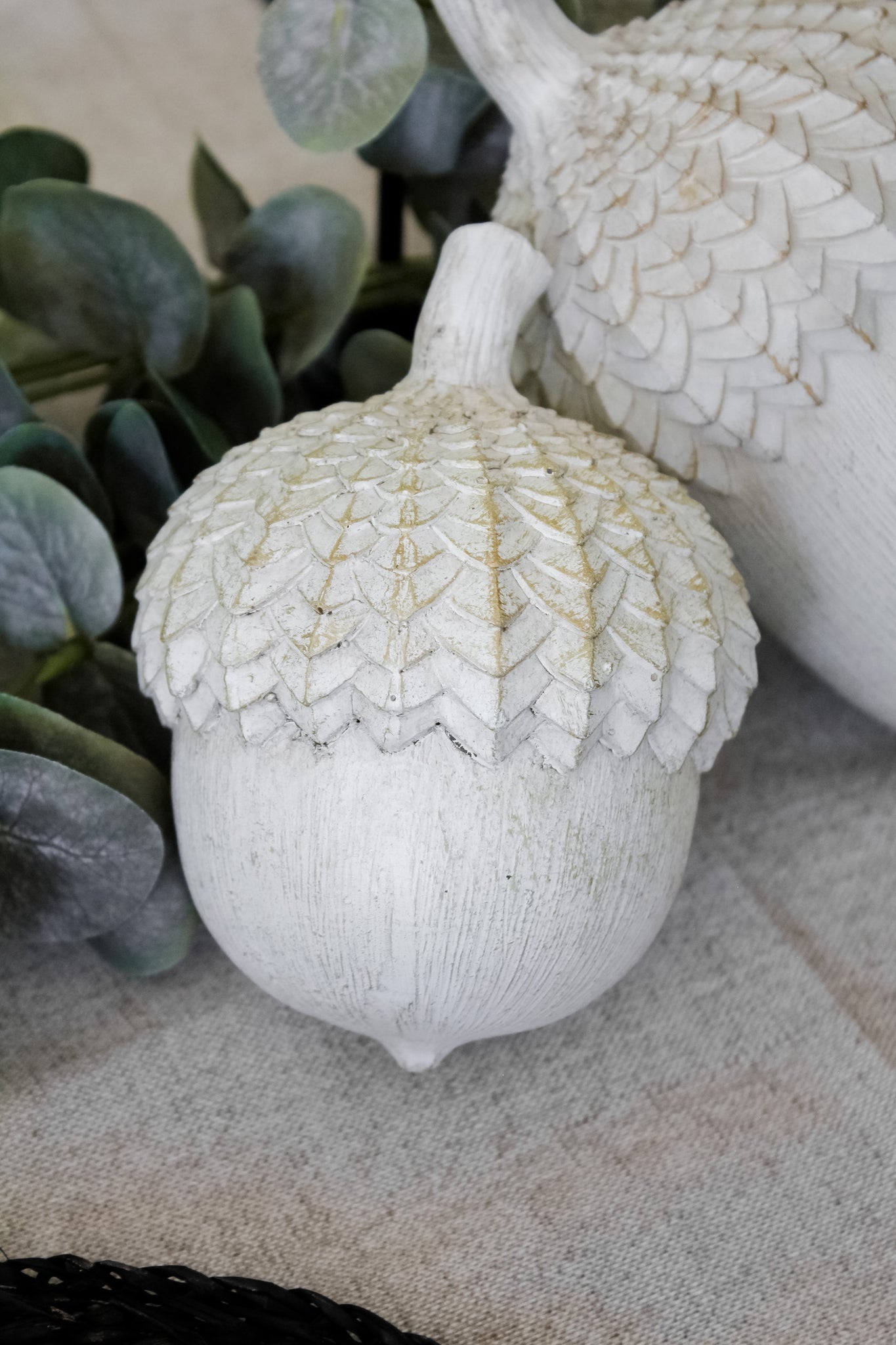 Avellana decorativa fabricada en poliresina en color blanco envejecido. Un modelo precioso para decorar tus espacios, desde tu mesa de comedor hasta tu arrimo de entrada, y montarla sobre una bandeja o caja libro. Definitivamente llamarán la atención.