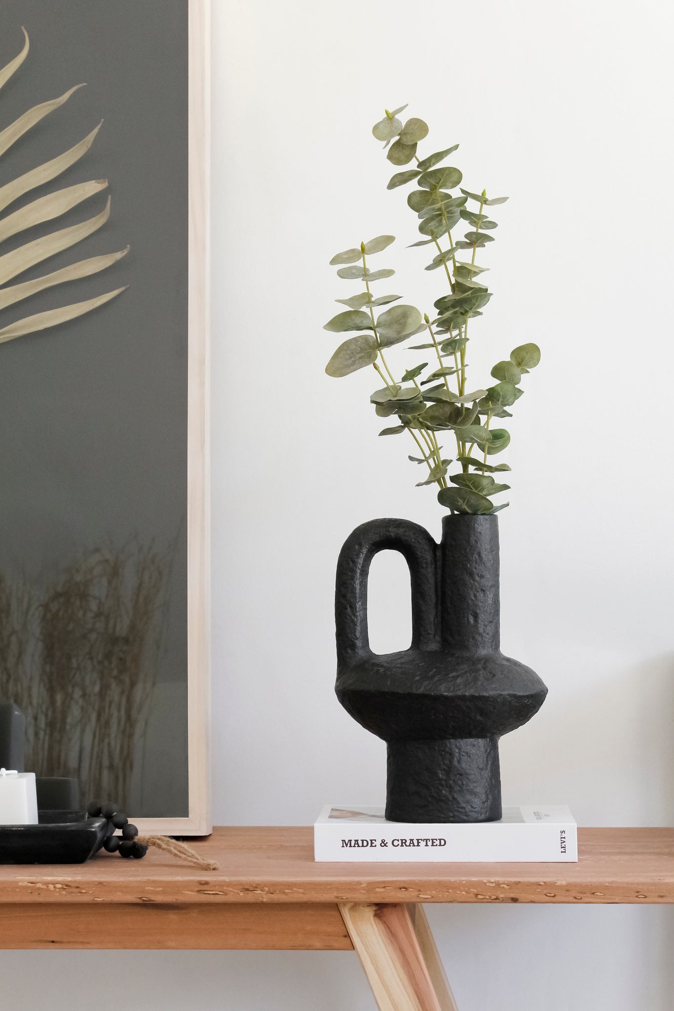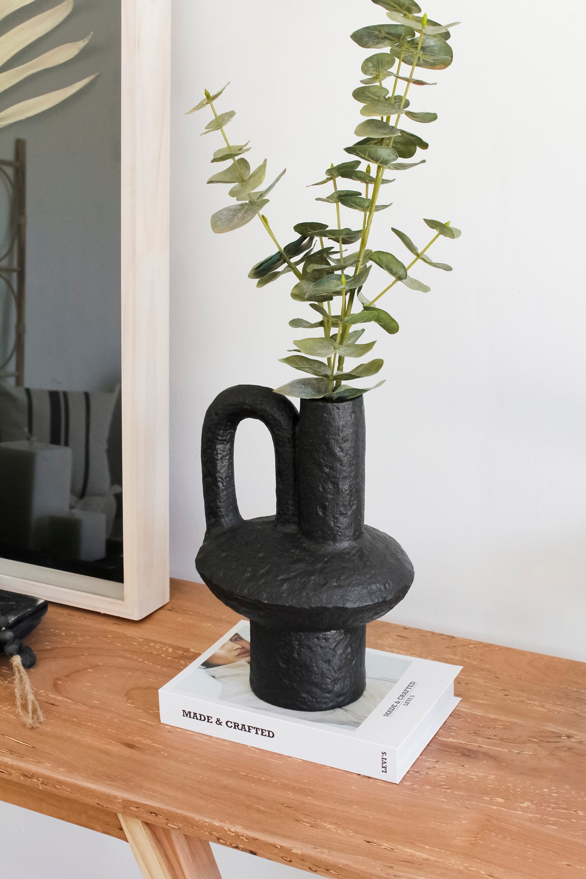 Un modelo de jarrón único, que entrega carácter y diseño al instante. Es perfecto para decorar por si solo o agregarle unas ramitas si quieres combinar con un look más natural. Puedes montarlo en tu arrimo de entrada, en la mesa de centro o en alguna repisa para darle más protagonismo.