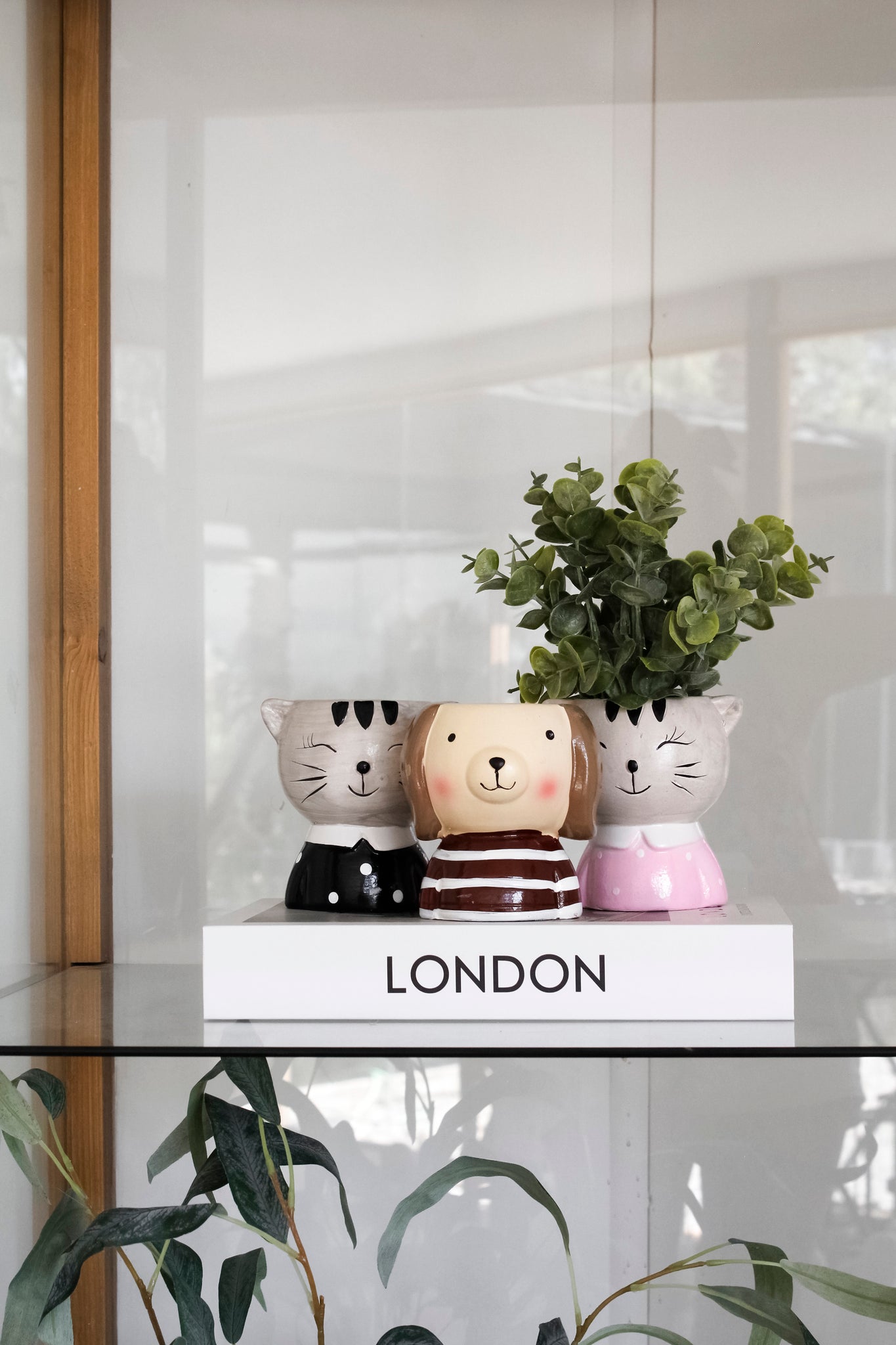 Pequeño macetero en forma de animal: gato negro, gato rosado y perro. Son una monada, un modelo distinto y sutil para poner en una repisa, en la pieza de los niños o incluso en el baño, acompañado de una plantita para darle un look más natural.