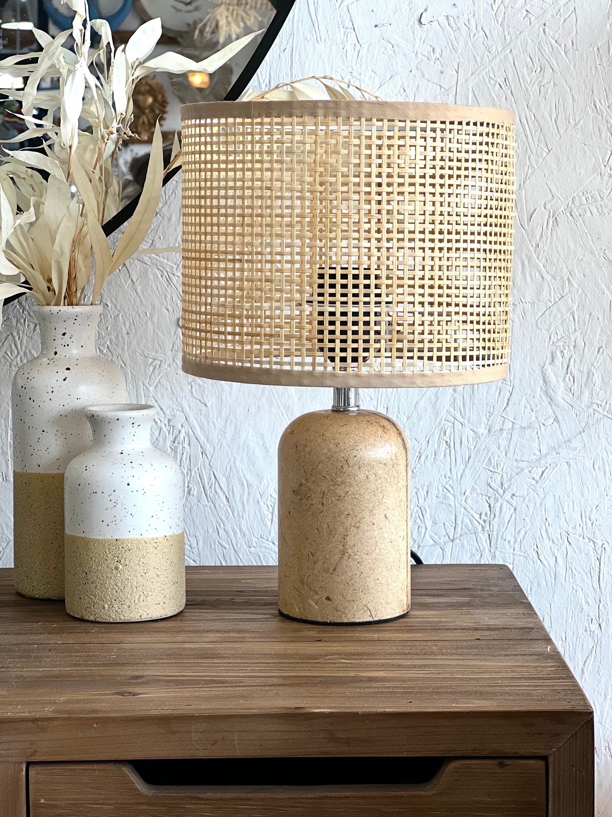 Lámpara Lore, para todos los que amamos la fibra natural y nos encanta darle ese toque cálido a los dormitorios este es el modelo de lampara que buscas.