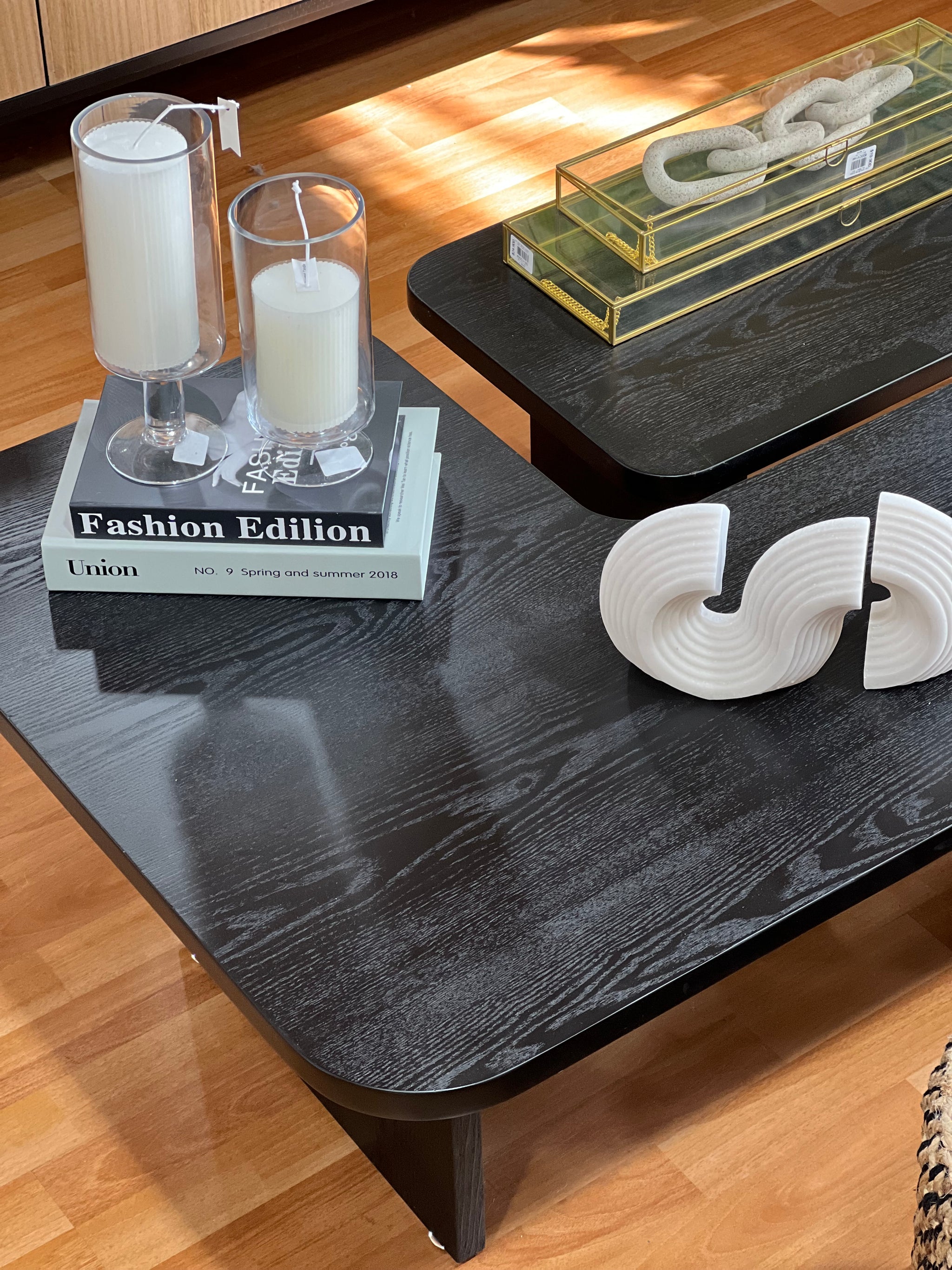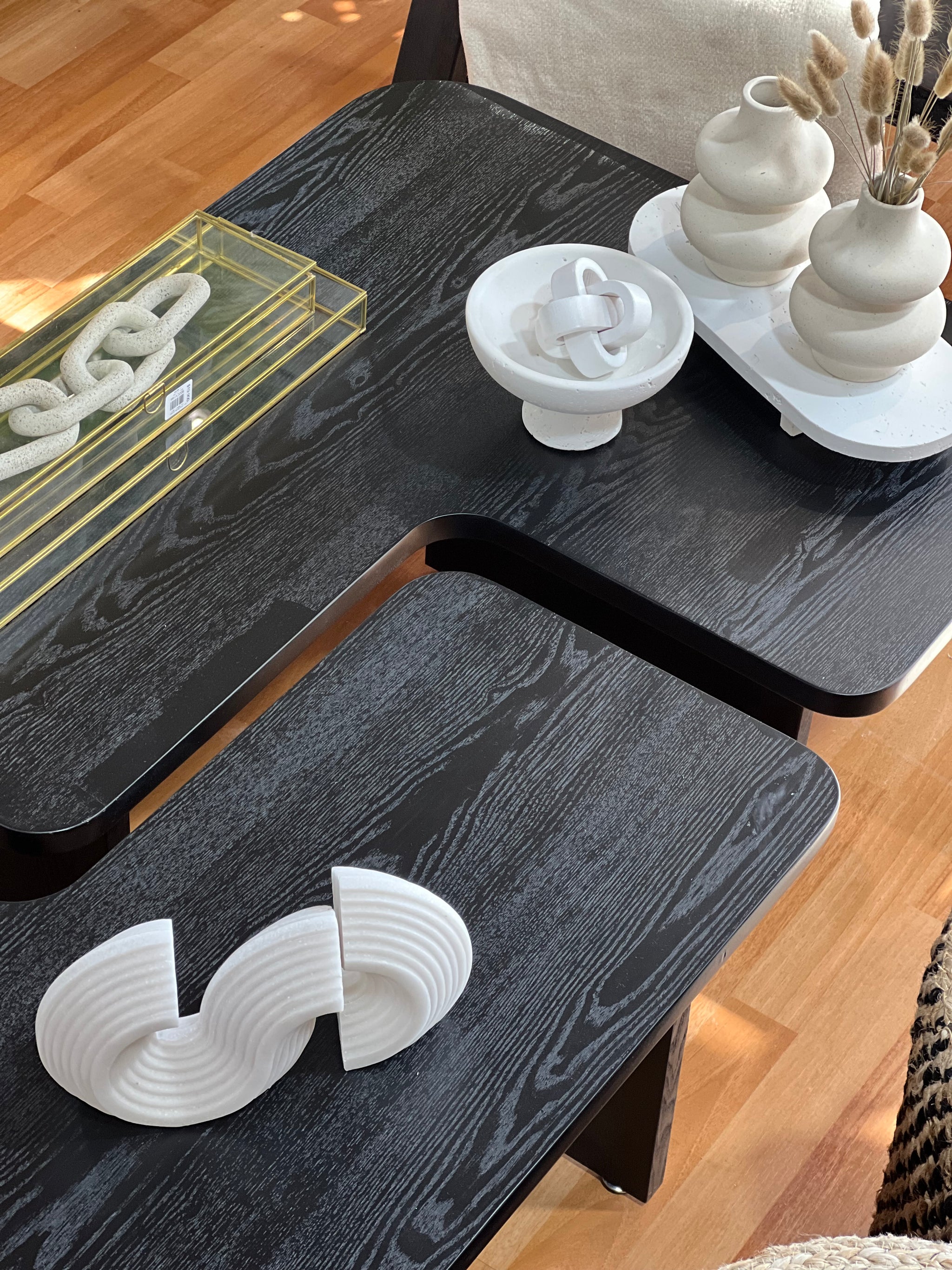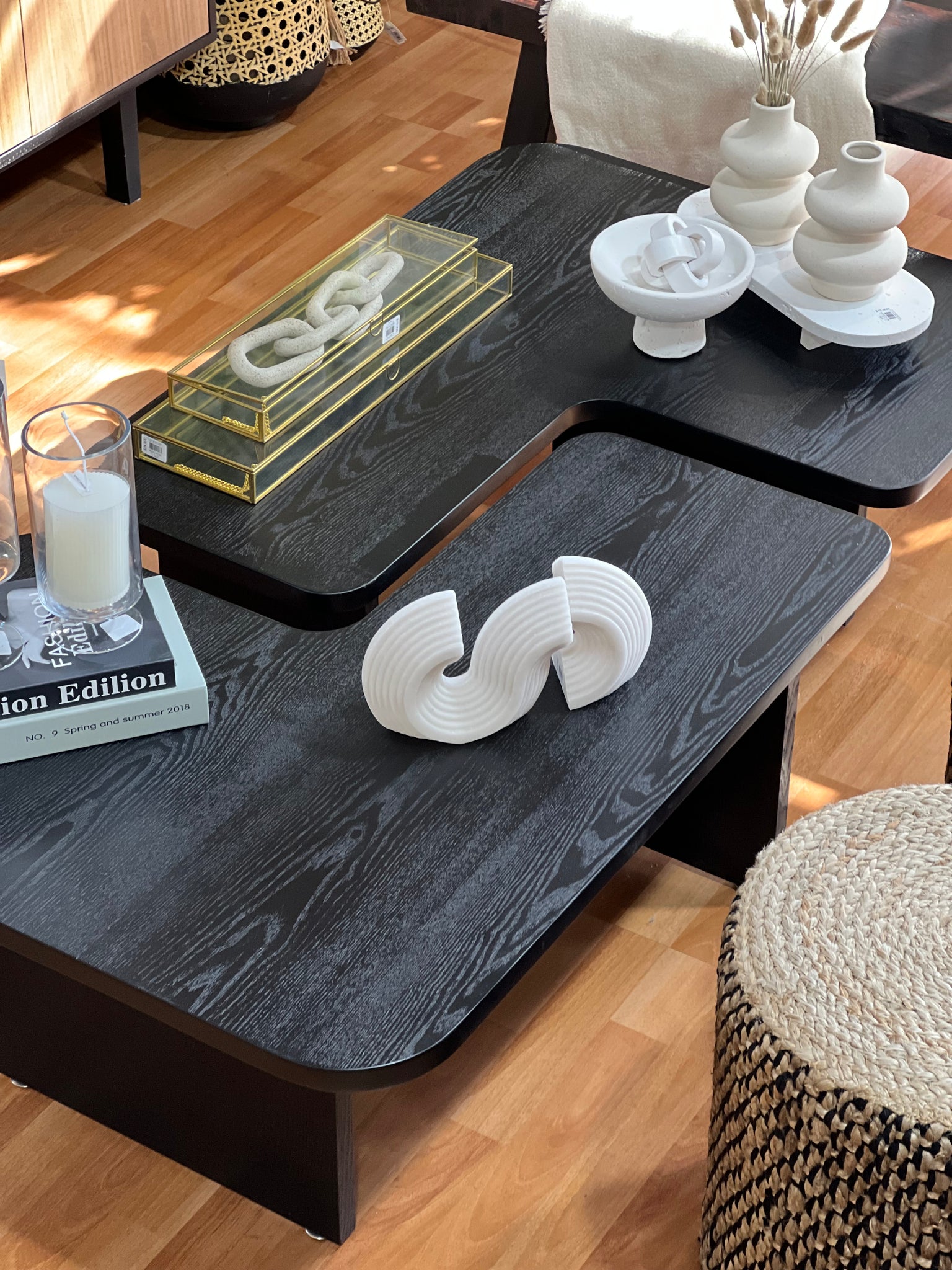 Compuesta por dos piezas fabricadas en madera de abeto de terminación negra, las cuales puedes montar con pequeñas distancias para aportar un toque de movimiento al espacio.