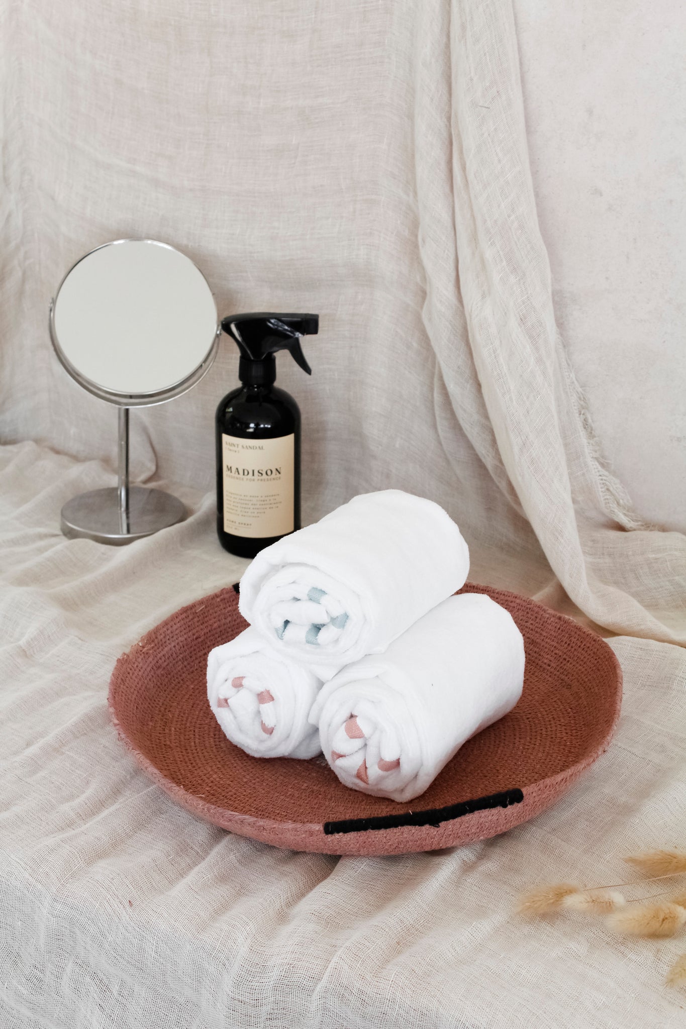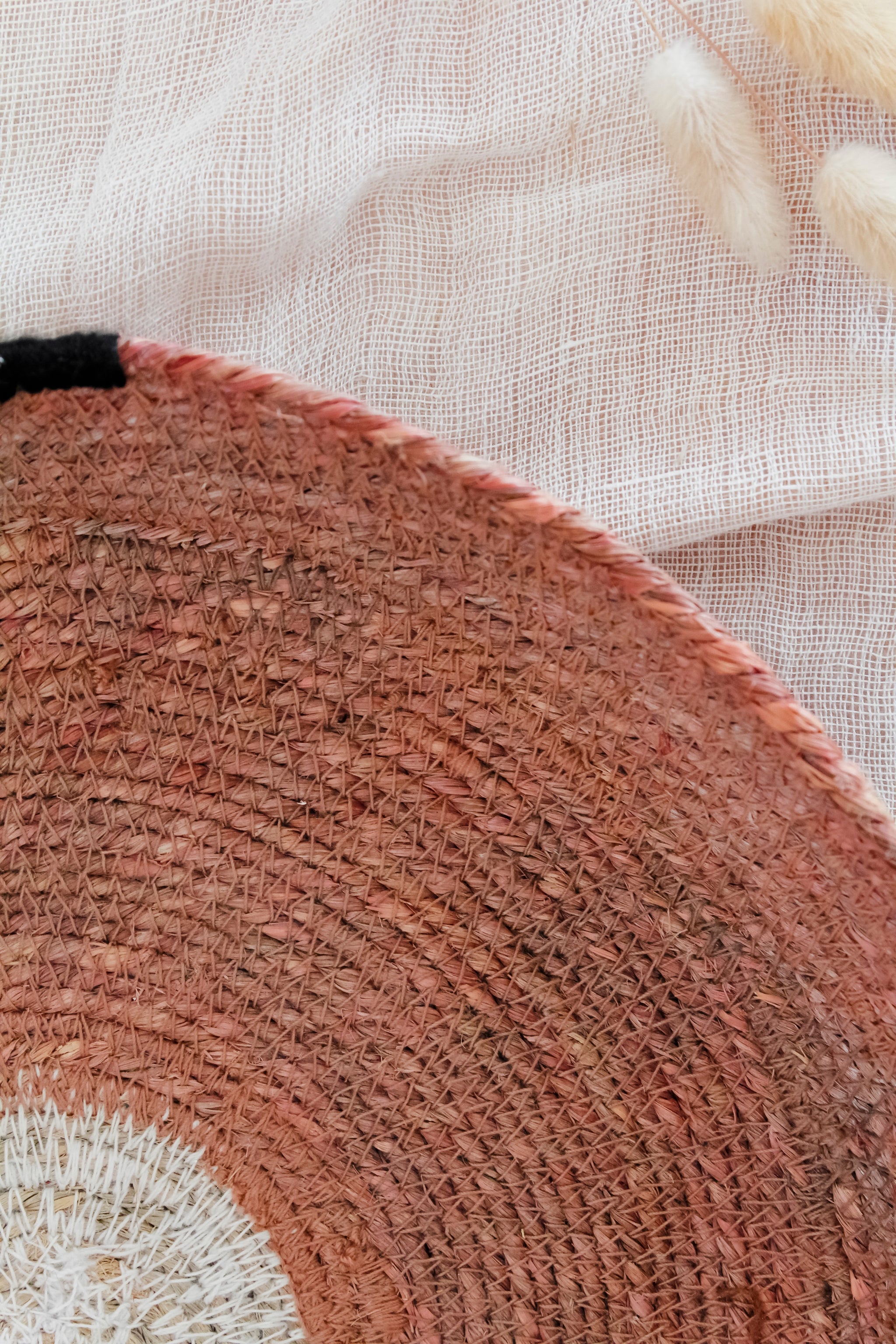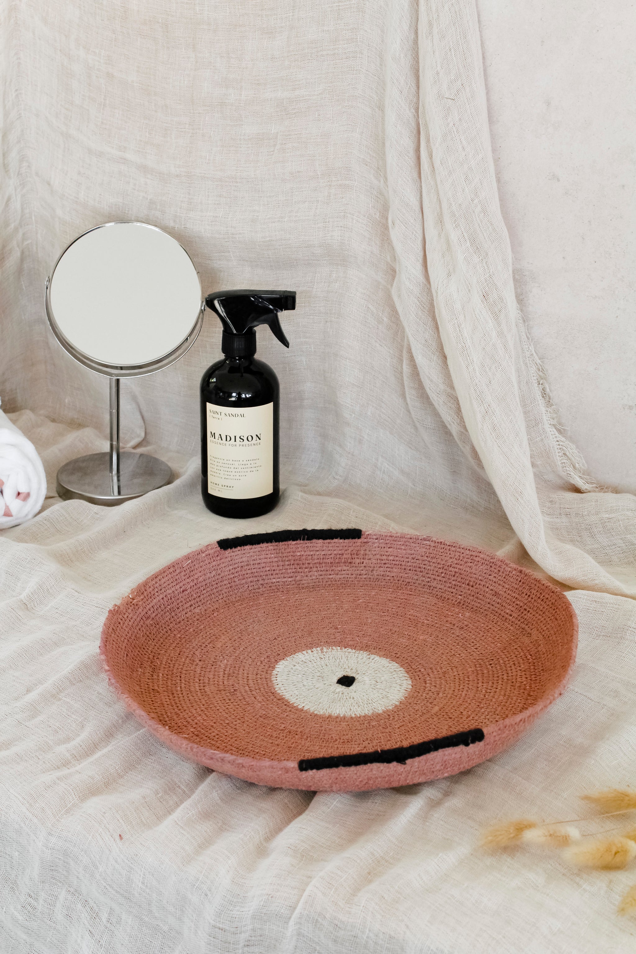 Canasto de fibra rojo, perfecto para decorar tu entrada con uno de nuestros arrimos, para organizar tus llaves o usarlo de base para tus maceteros.