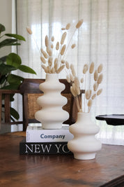 Atrévete a una decoración fresca y distinta con este maravilloso florero de cerámica texturizada. En un suave color blanco con detalles arenosos, es ideal para aportar luz y calidez.