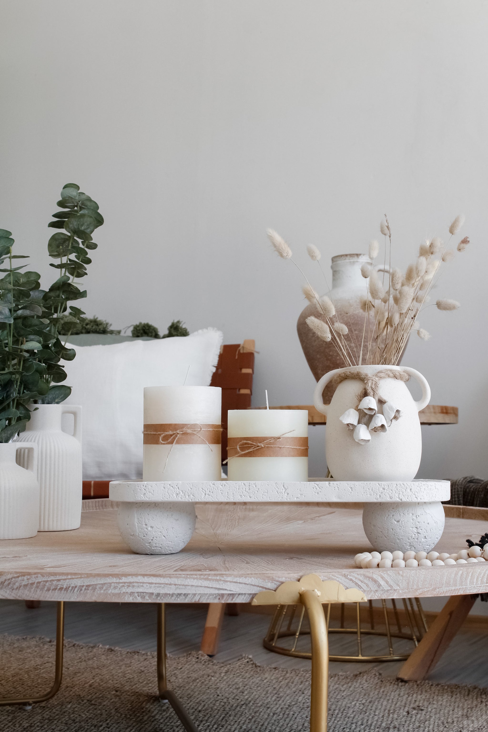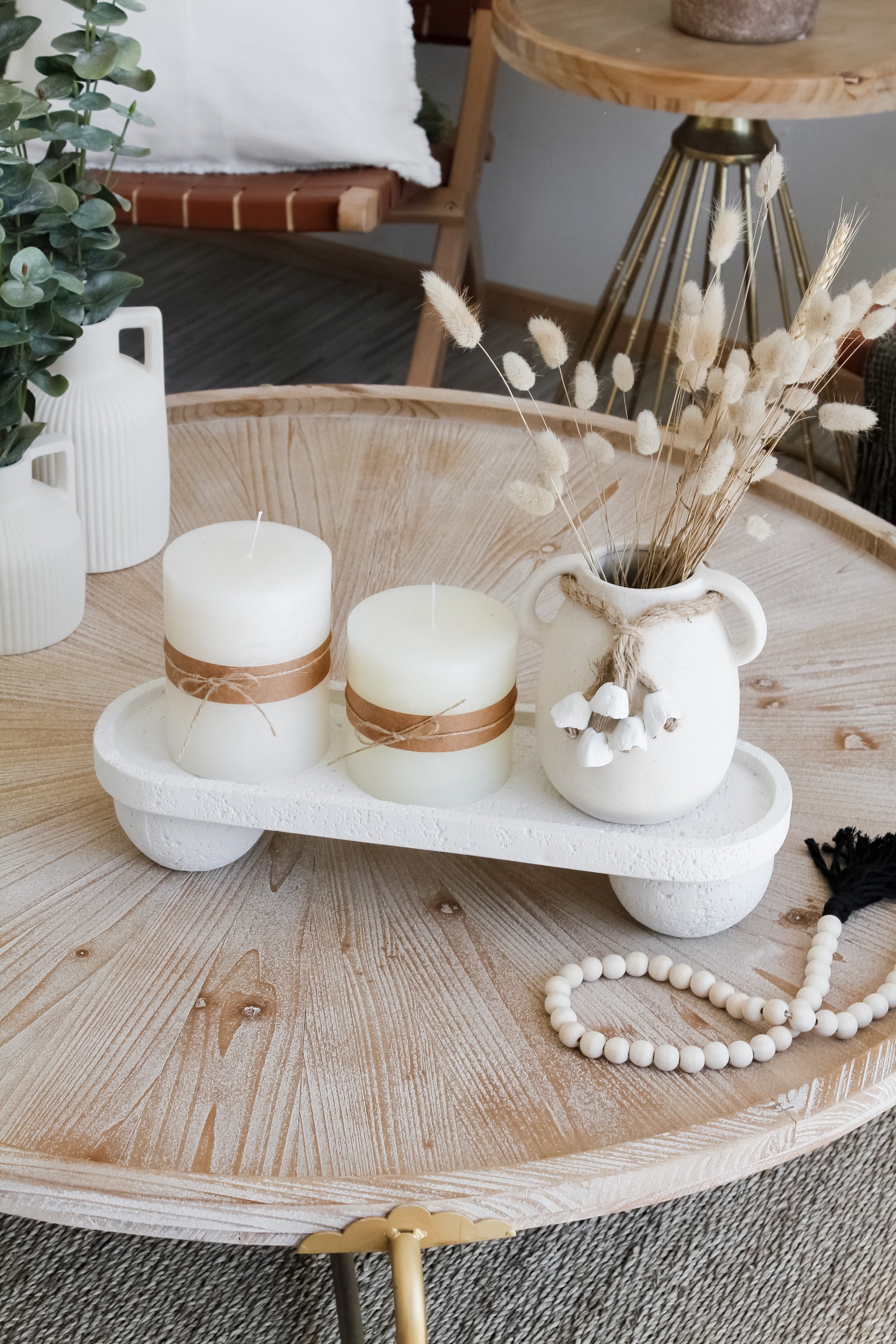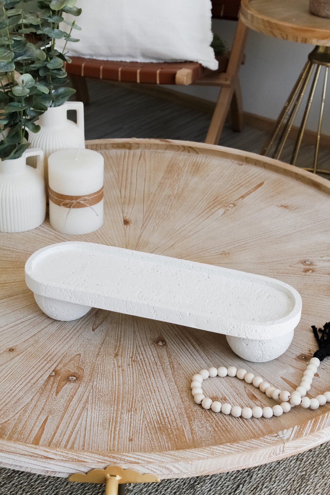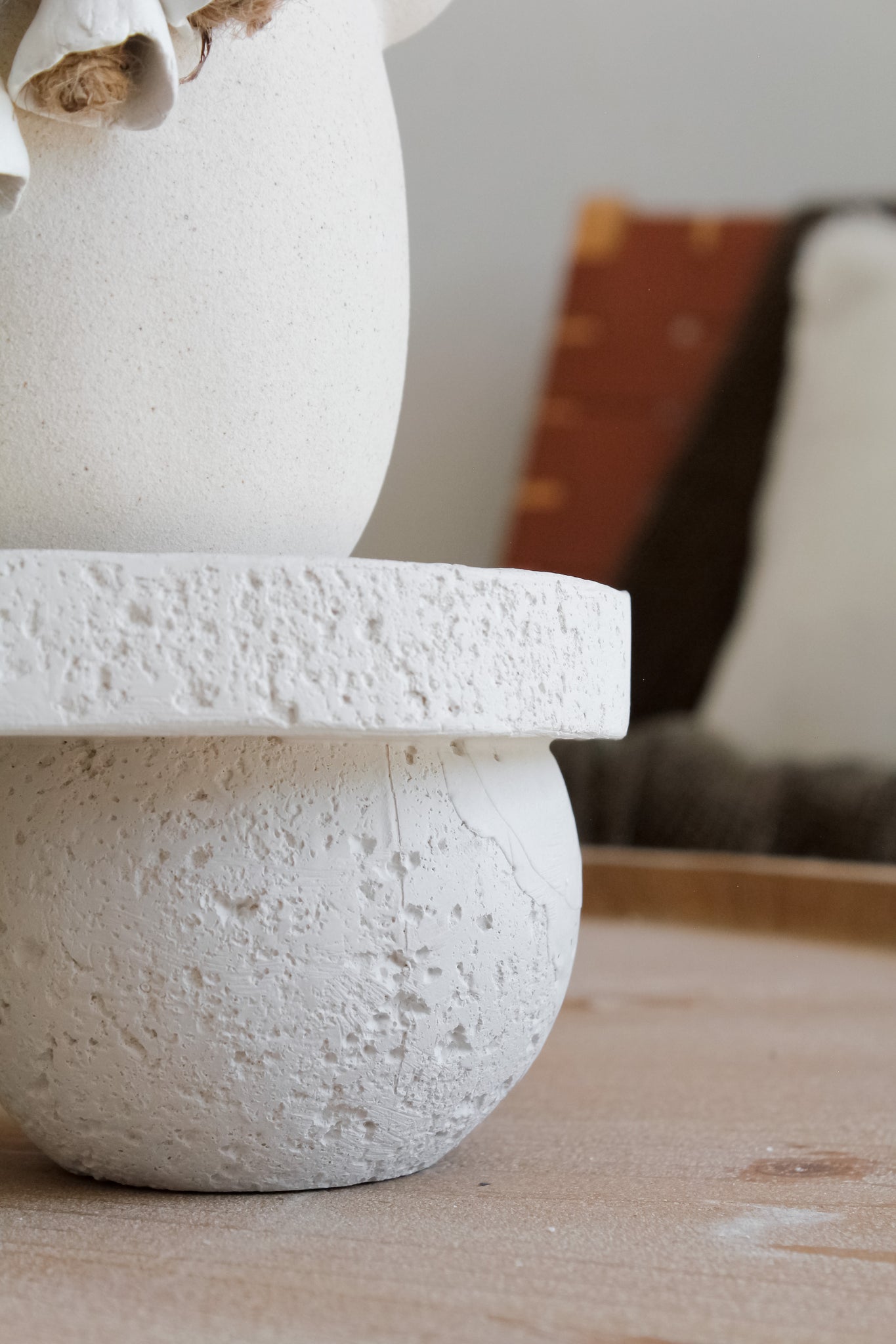 Bandeja de cemento con dos círculos de base, imitación piedra blanca y una maravilla que aporta elegancia y presencia donde la pongas.