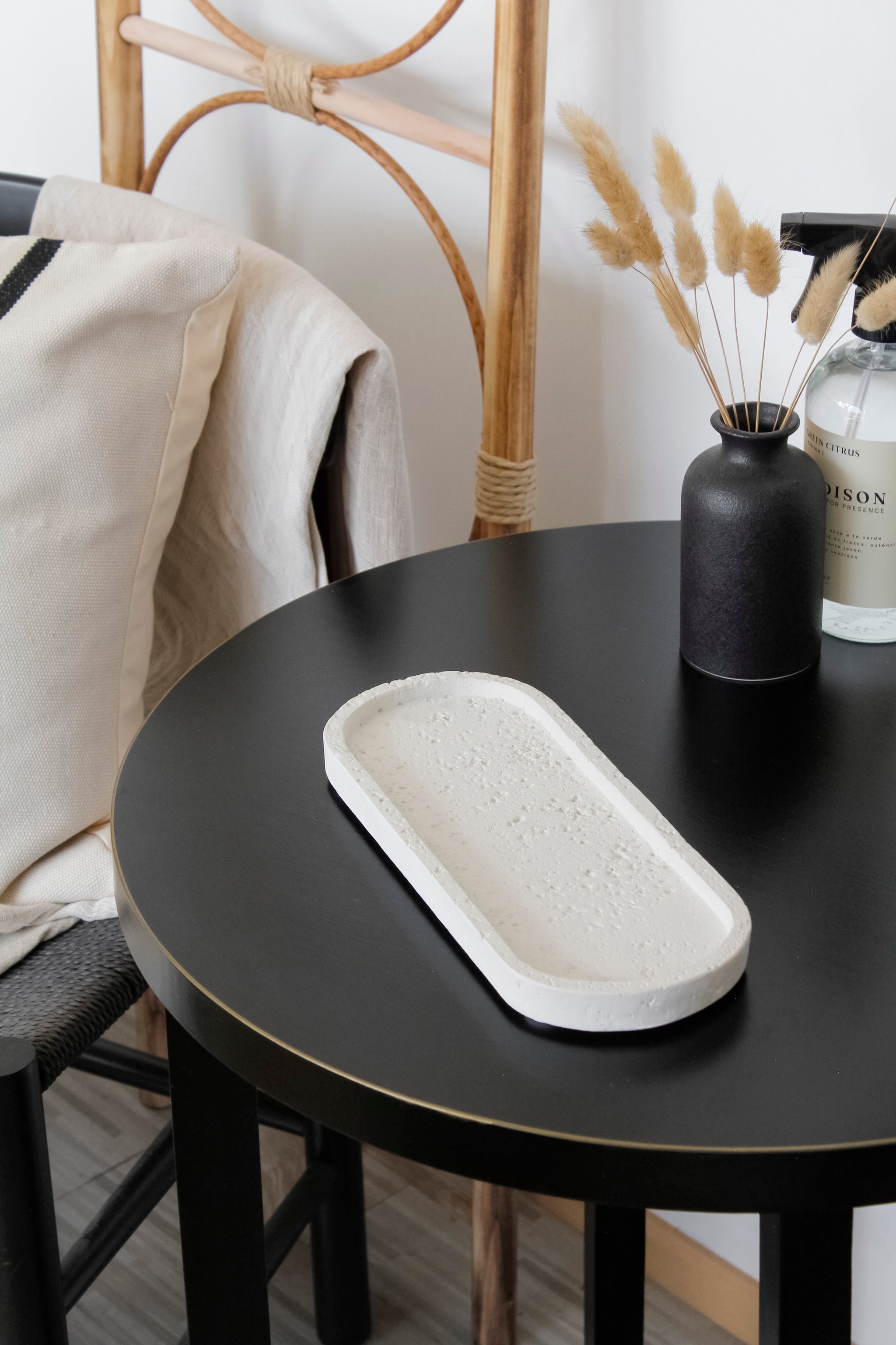 Esta elegante bandeja ovalada en color blanco es el elemento minimalista perfecto, que aporta luz, brillo y ese toque moderno que estás buscando. Su textura que imita la piedra porosa entrega un aire fresco y natural, que se integra de manera delicada en cualquier estilo de decoración.