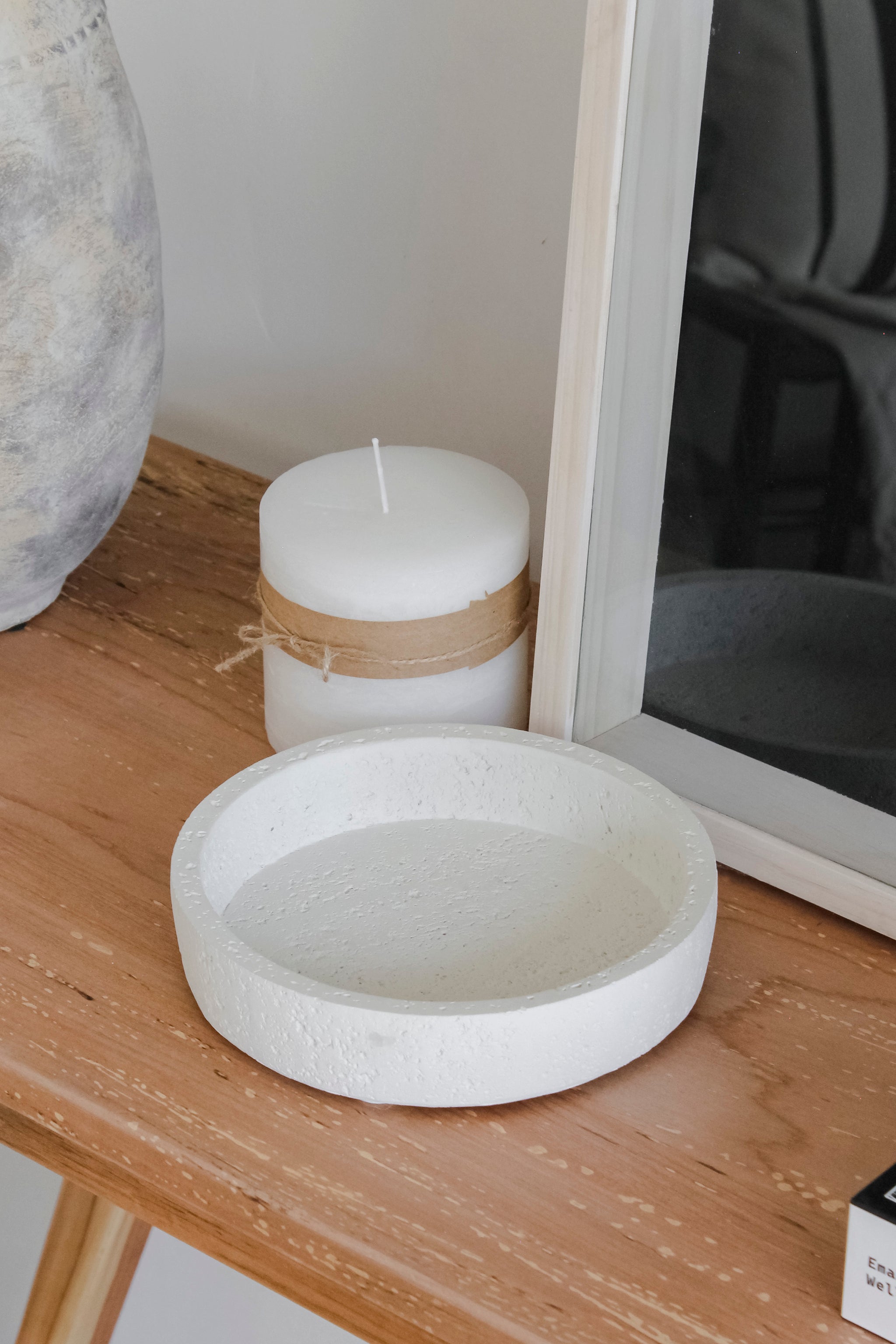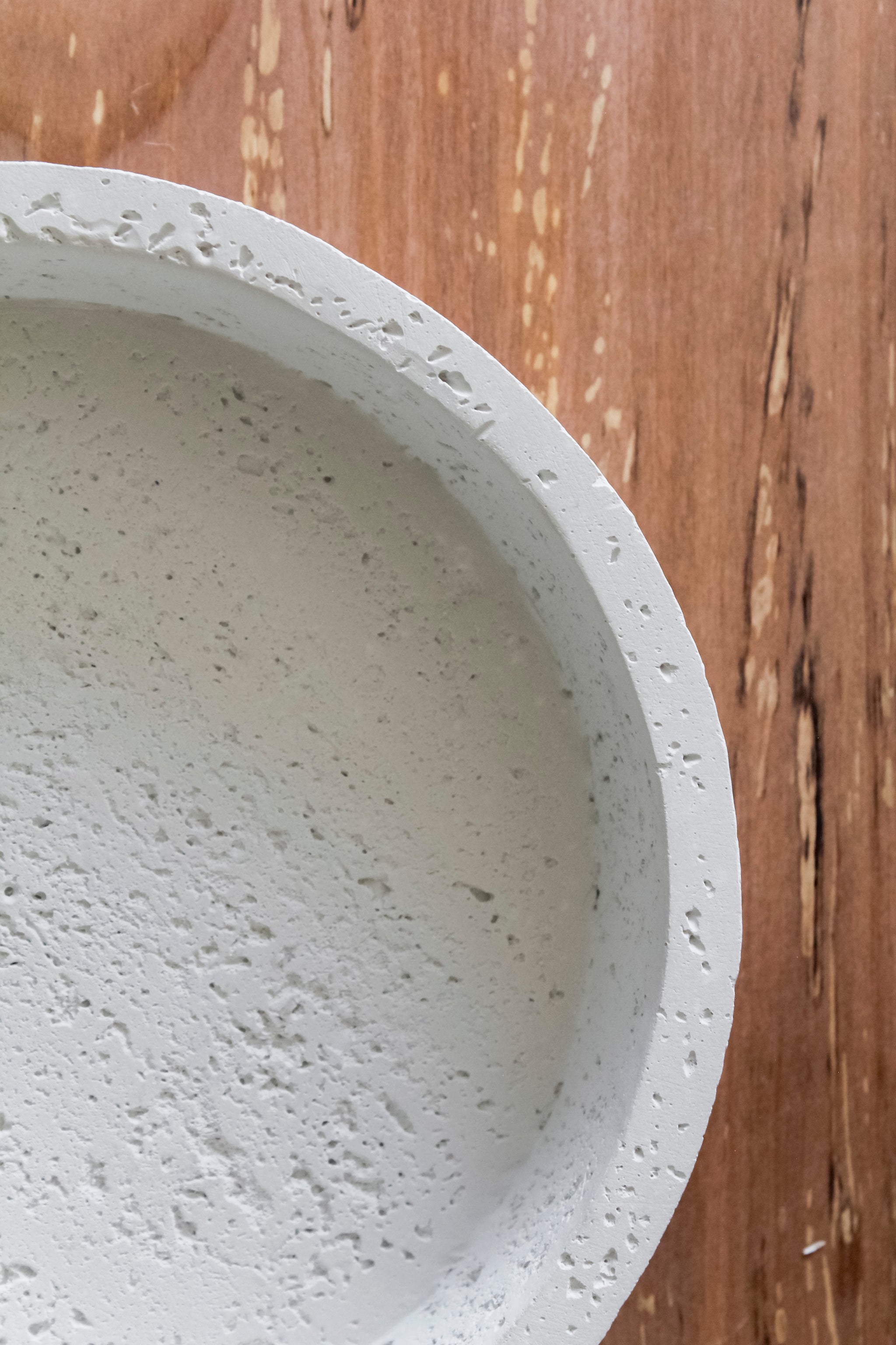Esta increíble bandeja redonda en color blanco es el modelo perfecto de toque minimalista y moderno, que aportará luz al espacio donde la montes. Su textura que imita la piedra porosa entrega un aire fresco y natural, que se integra de manera delicada en cualquier estilo de decoración.