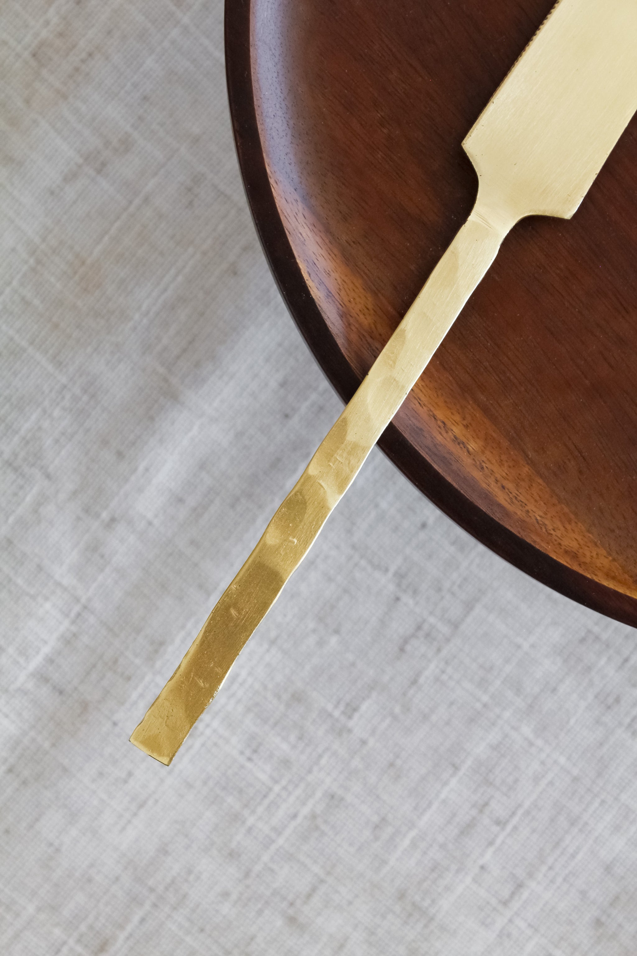Set de cubiertos para cortar y servir torta, de color dorado y diseño martillado en los mangos. Un modelo precioso para acompañar tu mesa y servir a tus invitados con un toque elegante.